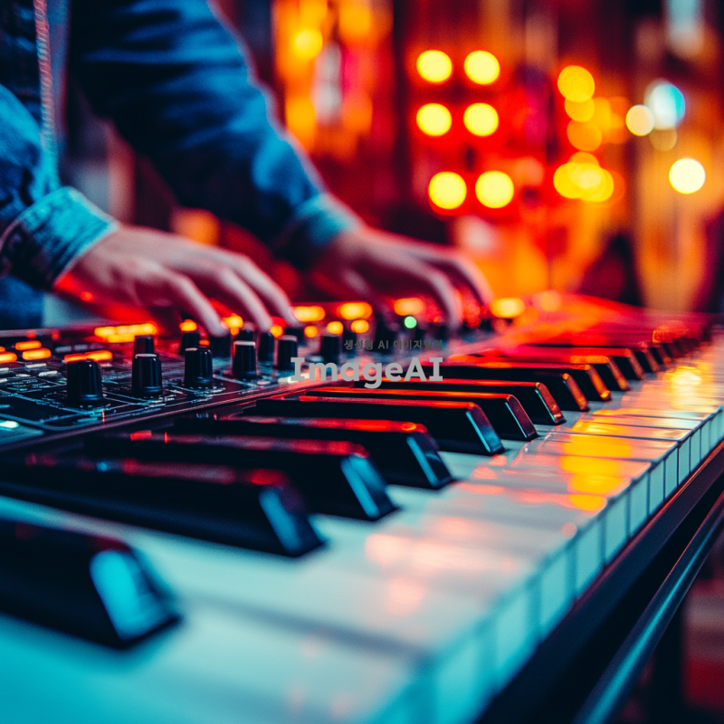 마스터키보드와 함께 현대적인 미디작업을 하는 AI