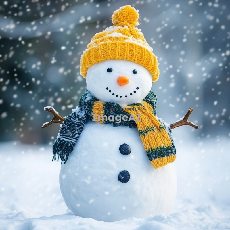 눈이 내리는 겨울 아침, 학교 가는 길에 서 있는 귀여운 눈사람. 눈사람은 크고 둥근 몸체에 모자와 스카프를 쓰고 있으며, 손에는 작은 책가방을 메고 있다. 배경에는 눈으로 덮인 나무와 학교 건물이 보이고, 주변에는 다른 아이들이 눈으로 놀고 있는 모습이 담겨 있다. 따뜻한 겨울 햇살이 비추고, 전체적으로 아기자기하고 따뜻한 분위기를 연출한다.
