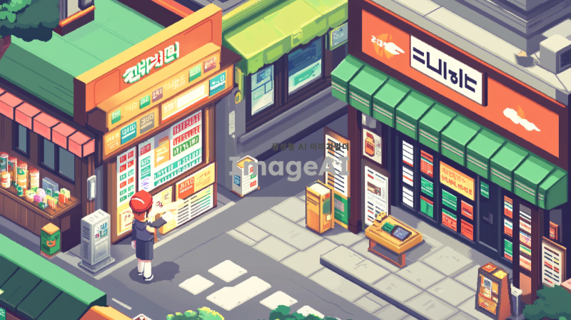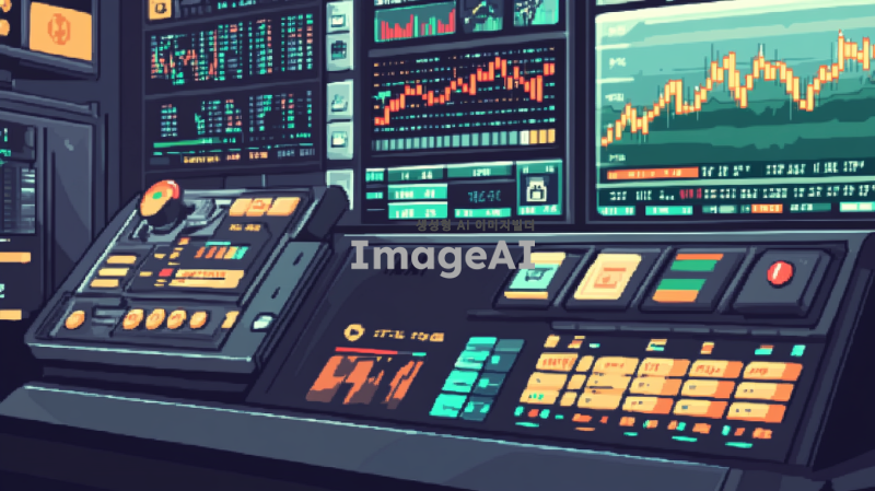 주식 게임을 위한 픽셀 아트 스타일의 사용자 인터페이스 디자인, 한국의 주식 시장을 반영한 그래픽 요소들, 다양한 주식 차트와 데이터 표시, 직관적인 버튼과 메뉴 구성, 밝고 경쾌한 색상 조합, 픽셀 아트 특유의 귀여운 캐릭터와 아이콘들, 게임의 몰입감을 높이는 배경 디자인.