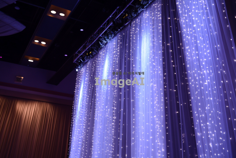 웨딩홀에서 led 전광판에 쓰일 커텐형태를 띈 조명 사진
