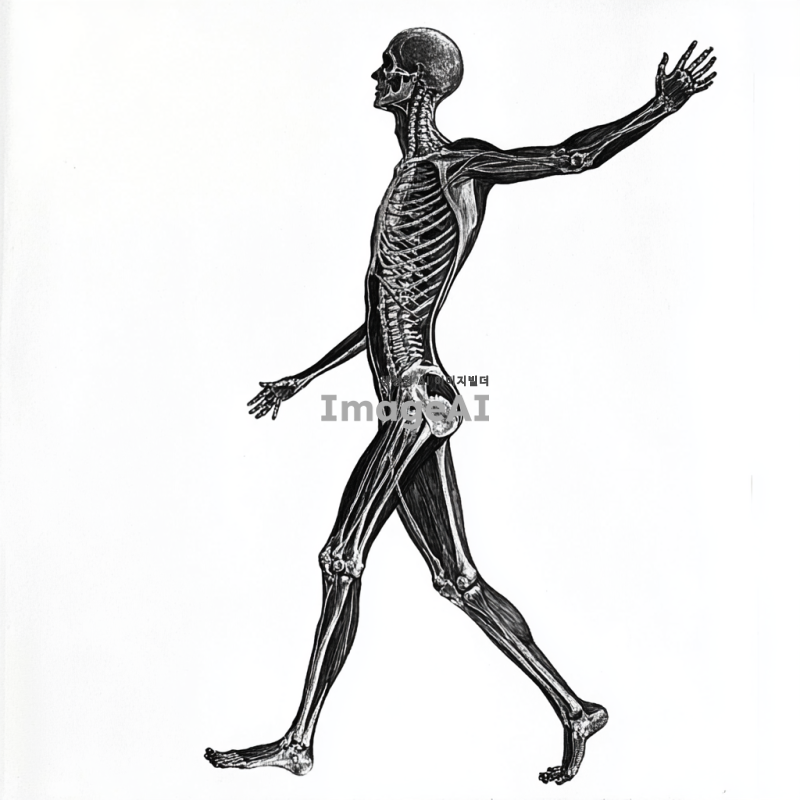 두팔을 위로 들어올린 상태에서 손바닥을 하늘로 향하게 하고 척추기립근을 앞뒤로 X자 형태로 움직이고, 몸 전체를 위아래로 스트레칭하면서 걷는 바디워킹 이미지가 필요합니다. 참고로 인체를 관통하는 혈관계와 림프계의 X자 형태를 응용한 걷기운동입니다.