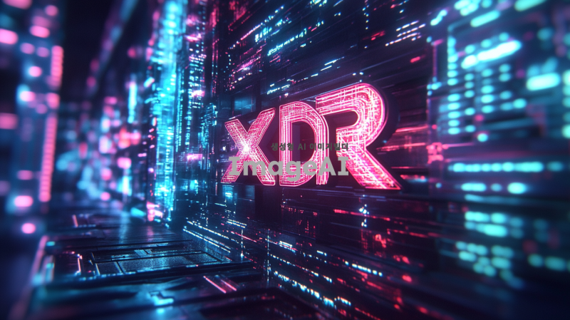 XDR이라는 단어를 중심으로 한 미래적인 느낌의 배경, 빛나는 효과와 함께 XDR 글자가 강조된 이미지