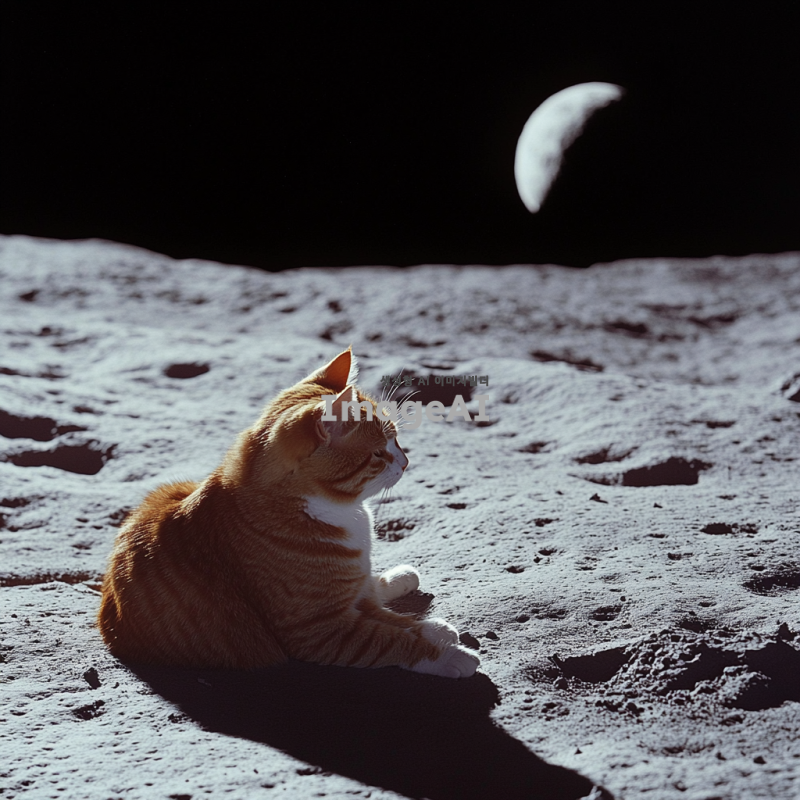 달 표면 위에 앉아 쉬는 이미지.
