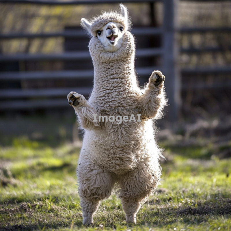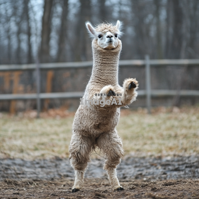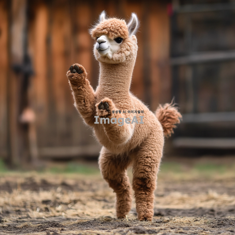 사람처럼 춤추는 알파카. 역동적인 동작으로 신나게 춤춘다. 친구들도 함께 춤춘다.