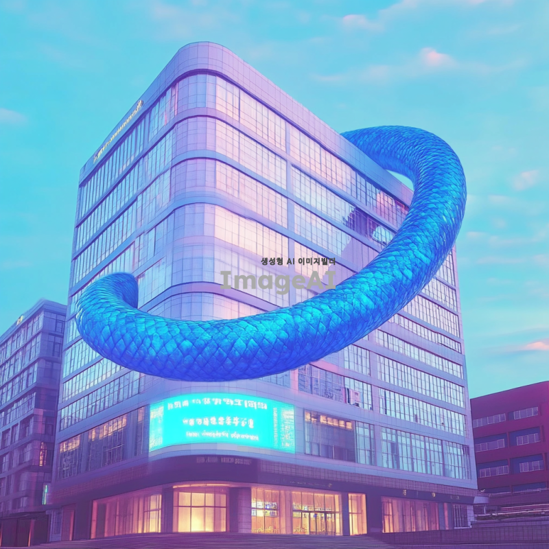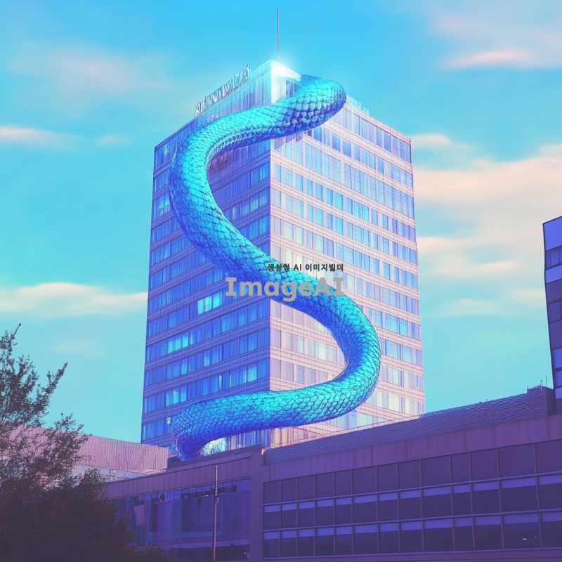 푸른뱀이 건물 전체를 휘감고 있고 상서로운 기운을 주변에 발산