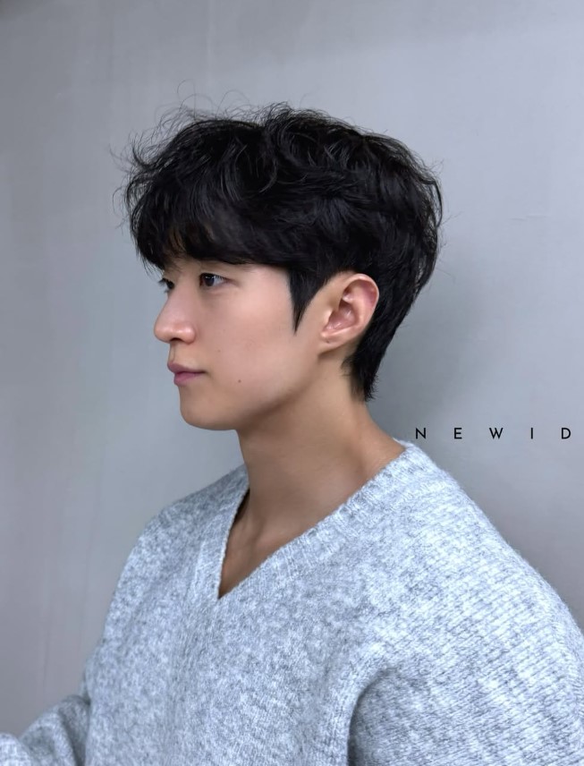 평범한 한국 남자, 검은 머리를 옆으로 가르마를 타고 웨이브 질감의 짧은 헤어스타일로 하고 있습니다. 그는 오버사이즈 검정 스웨터를 입고 있습니다. 배경 색상은 그의 프로필을 강조하기 위해 흰색 이어야 합니다. 자연스러운 피부 톤을 유지하고 정면을 바라보며 자신감 있는 모습으로 보이도록 하세요. 사진이 선명하고 자세히 보이도록 하세요.