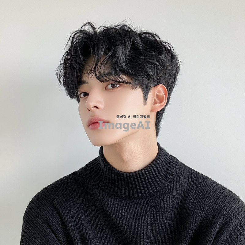 평범한 한국 남자, 검은 머리를 옆으로 가르마를 타고 웨이브 질감의 짧은 헤어스타일로 하고 있습니다. 그는 오버사이즈 검정 스웨터를 입고 있습니다. 배경 색상은 그의 프로필을 강조하기 위해 흰색 이어야 합니다. 자연스러운 피부 톤을 유지하고 정면을 바라보며 자신감 있는 모습으로 보이도록 하세요. 사진은 고화질로 보이도록 하고, 사진속 인물이 실제 같이 보이도록 하세요.