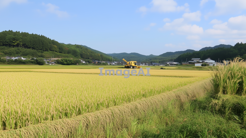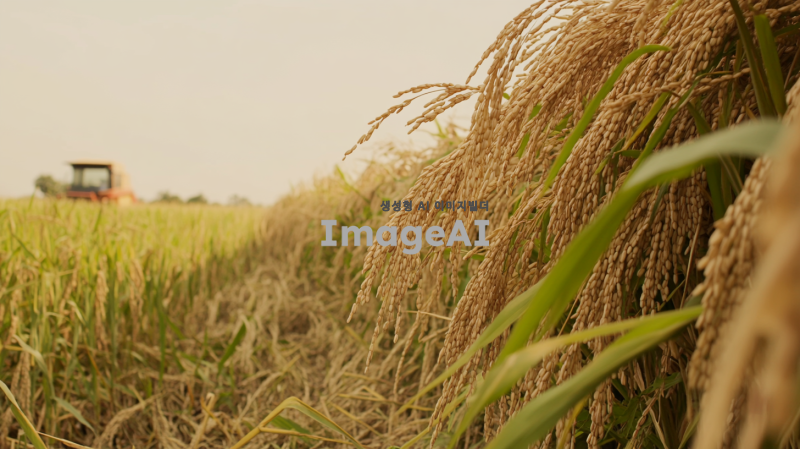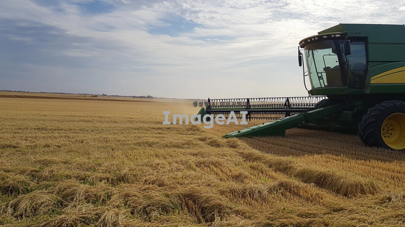 콤바인으로 벼를 베고 있는 모습