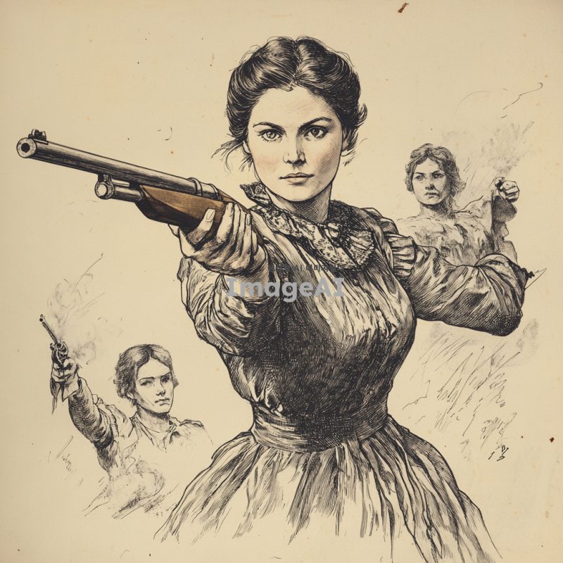 오른손엔 돌격소총을 들고있고 왼쪽팔 3개인 여자를 그려줘