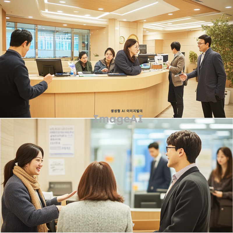 한국의 자립예탁금 제도를 주제로 한 이미지, 현대적인 은행의 내부 모습과 고객이 상담을 받는 장면, 다양한 연령대의 한국인 고객들이 자립예탁금에 대해 이야기하는 모습, 친절한 은행 직원이 고객에게 설명하는 모습, 밝고 따뜻한 분위기, 금융 상담을 받는 사람들의 표정이 진지하고 집중하는 느낌, 현대적인 디자인의 은행 인테리어, 자립적인 금융 관리에 대한 희망적인 메시지 전달.