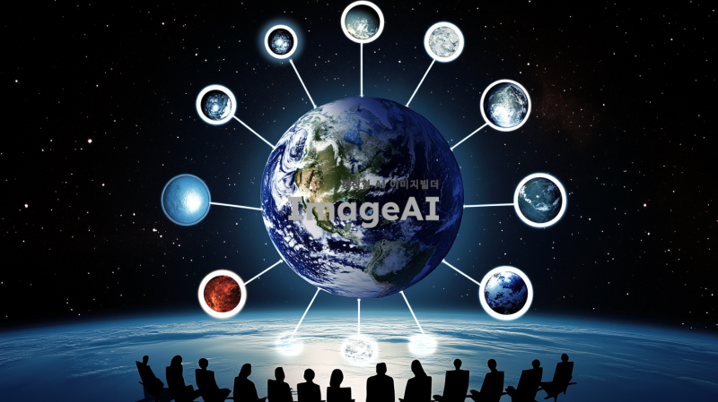 해당 사진에서 중앙에 지구와 연결된 모든 원들의 크기를 두배 키워줘,