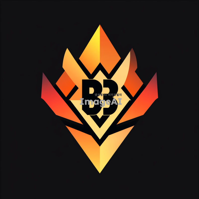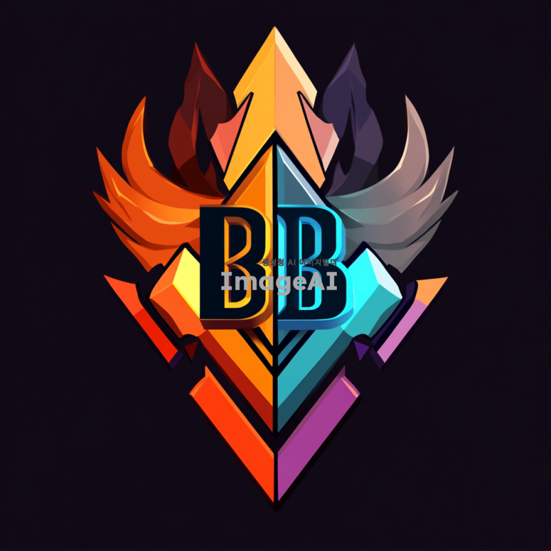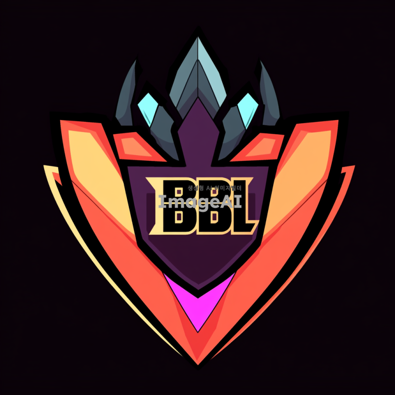 발로란트의 독특한 스타일을 반영한 로고 디자인, 중앙에 'BBB'라는 텍스트가 강조되고, 현대적이고 세련된 느낌을 주는 색상 조합, 게임의 역동성과 에너지를 표현하는 요소들, 배경은 어두운 톤으로 설정하여 로고가 돋보이도록 구성.