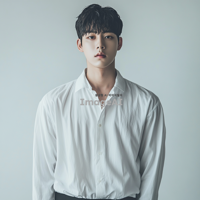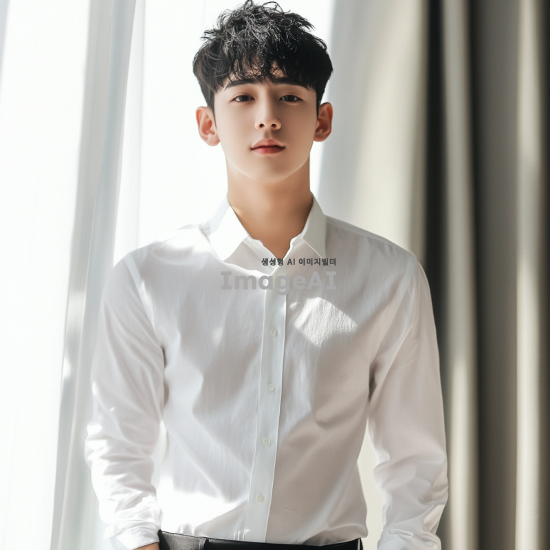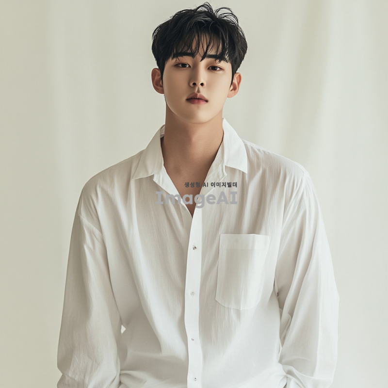 깔끔한 배경에서 팔 길이가 손목보다 조금 덜 되는 흰 셔츠를 입고 있는 젊은 한국인 남자의 모습. 배경은 단순하고 세련된 느낌으로 구성되어 있어 주목을 끌지 않도록 한다. 팔길이가 짧은 셔츠를 강조하기 위함이므로 얼굴부터 허벅지까지 보여야하며 팔을 중심적으로 보여줘야 한다. 긴팔 셔츠이지만 셔츠의 팔길이가 짧은 느낌.