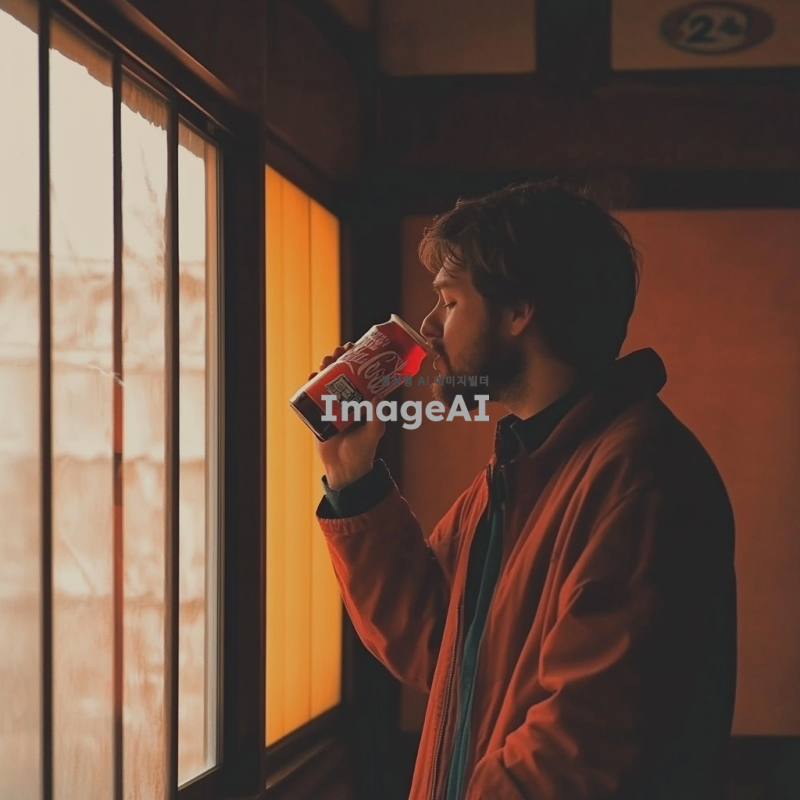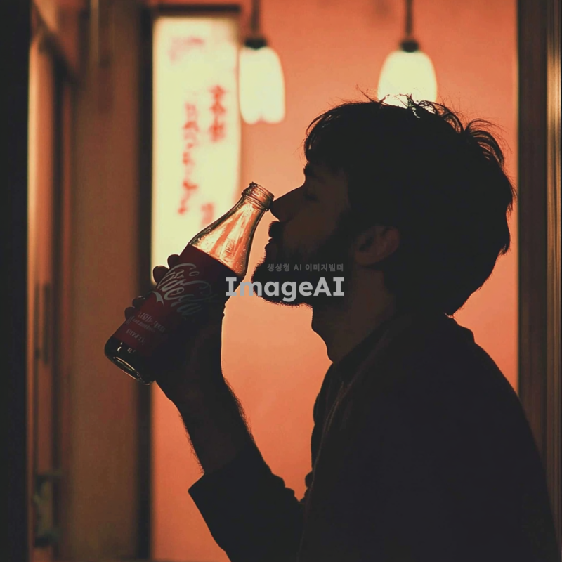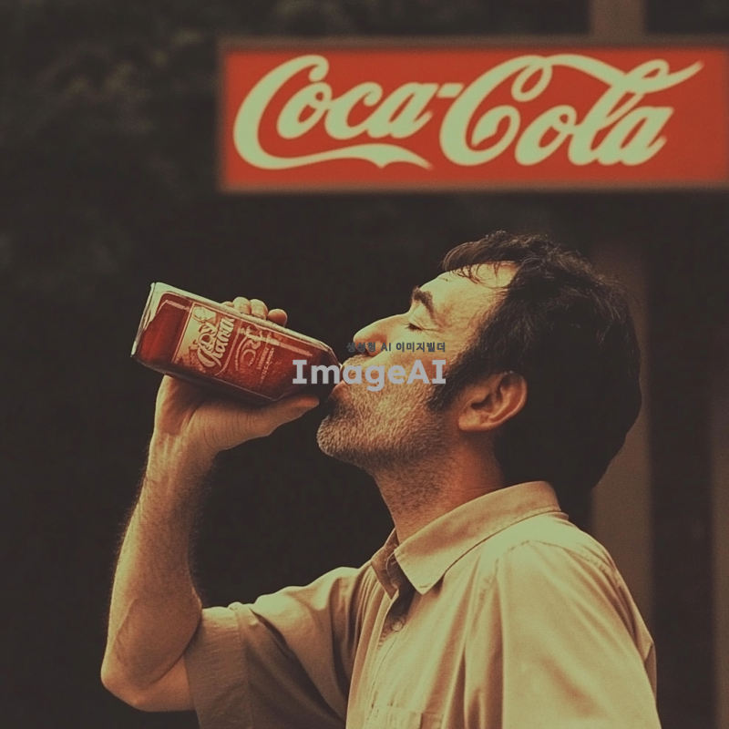 남성이 코카콜라를 마신다. 누가봐도 시원한 탄산감이 느껴진다.