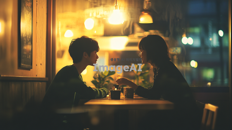 카페의 아늑한 조명과 따뜻한 분위기 속에서 그들의 사랑이 다시 시작되는 장면.