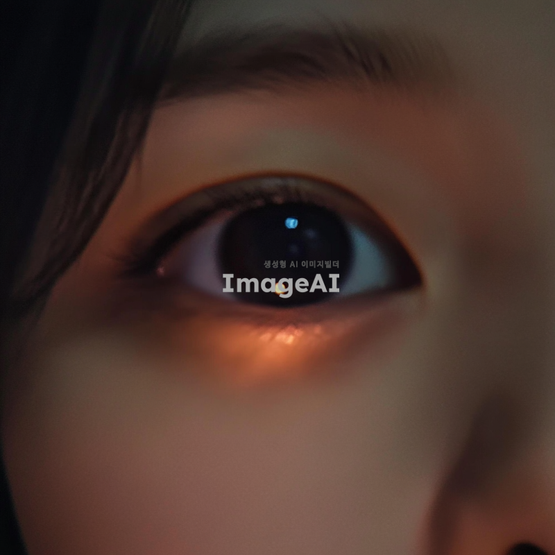 촛불의 따스한 빛이 비치는 한국인의 눈동자, 어두운 배경 속에서 촛불의 불빛이 반사되어 신비롭게 빛나는 눈, 감정이 담긴 깊은 시선, 부드러운 표정과 함께 촛불의 따뜻한 색감이 강조된 분위기.