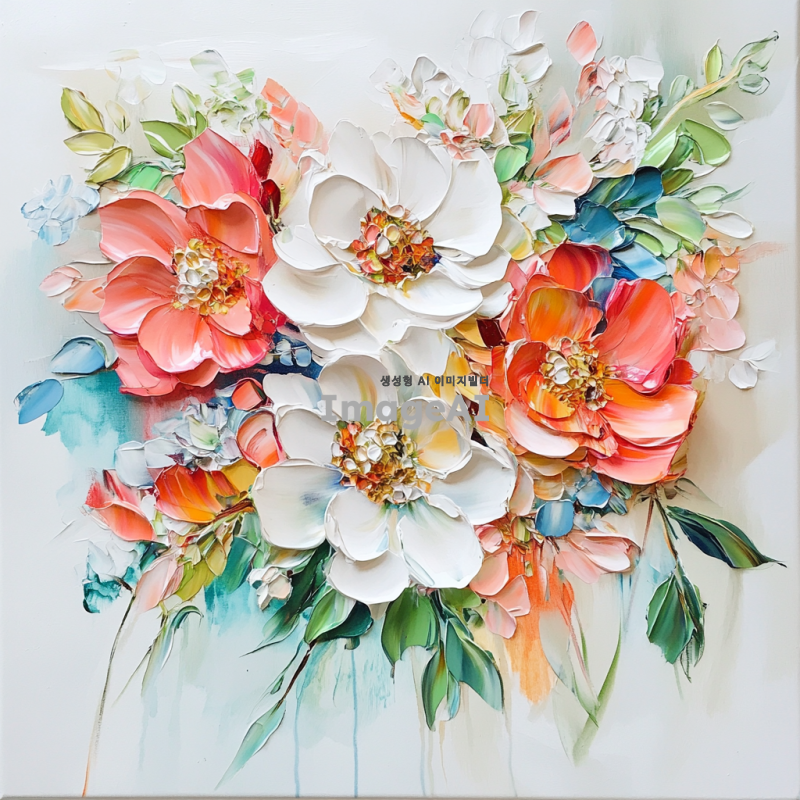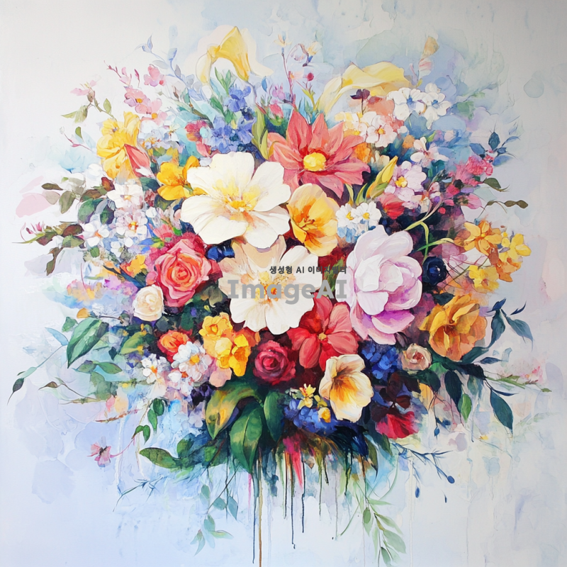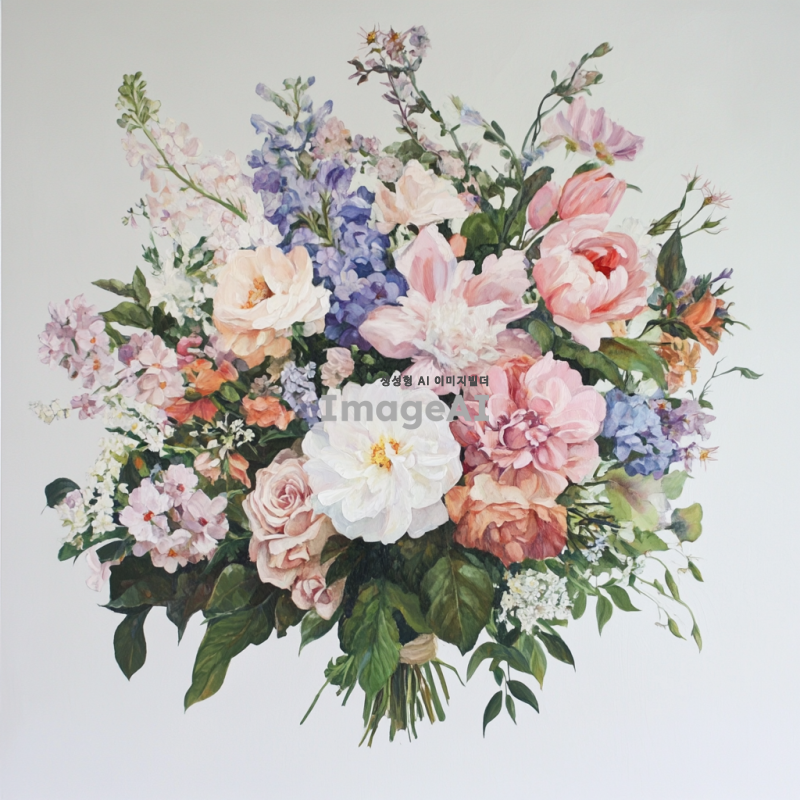 아름다운 꽃다발을 그린 그림,배경은 흰색으로