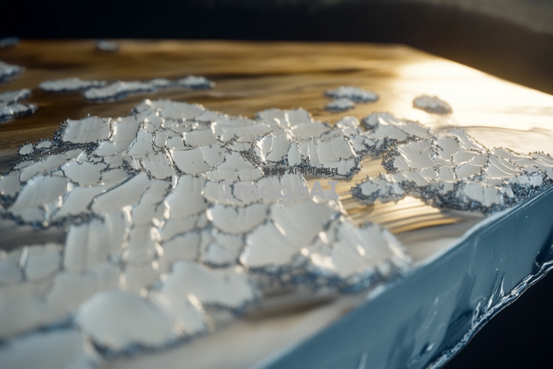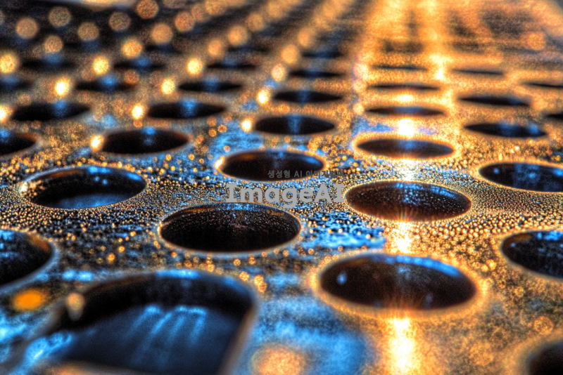 TFT 공정 중 메탈 패터닝 이후 PI 재료로 펑탄화된 표면의 상부 평탄도를 보여주는 실험 결과 이미지. 고해상도로, 표면의 미세한 결함이나 특성을 강조하여, 평탄한 표면과 그 주변의 대비를 뚜렷하게 나타냅니다. 배경은 실험실 환경을 나타내며, 조명은 부드럽고 균일하게 설정하여 표면의 질감과 평탄도를 잘 드러내도록 합니다.