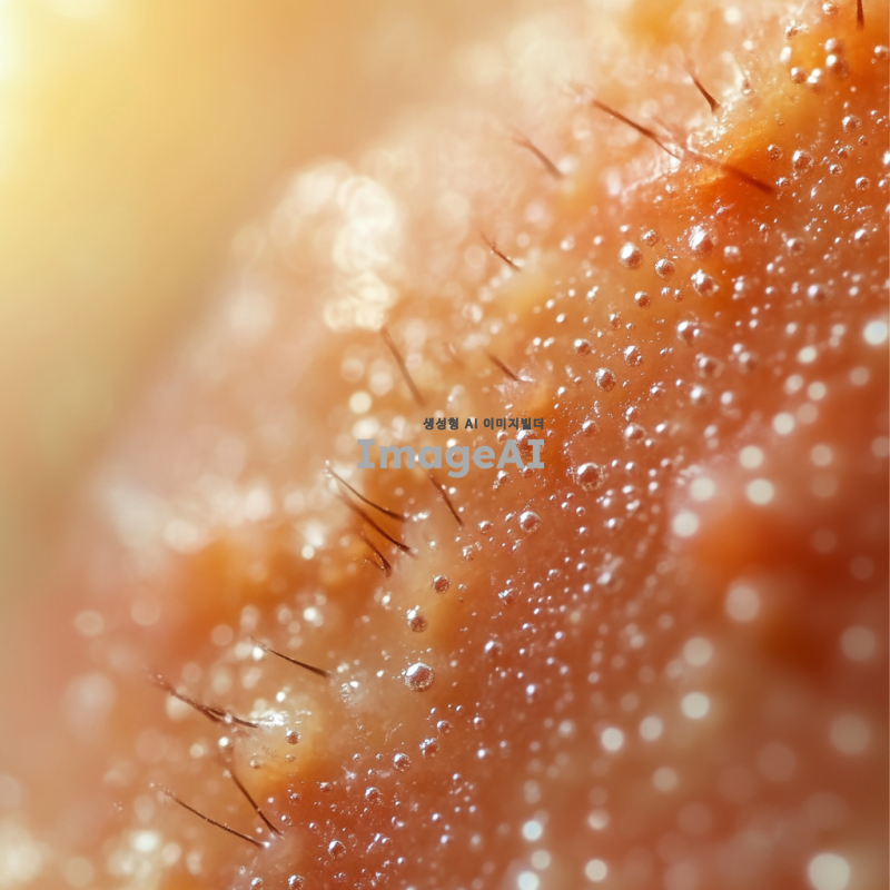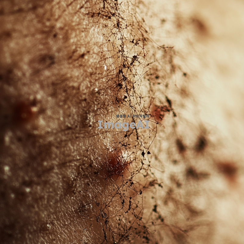 두드러기가 있는 한국인의 피부를 클로즈업으로 촬영한 이미지, 피부의 발진과 붉은 반점이 잘 드러나도록, 자연광 아래에서 촬영된 듯한 느낌, 배경은 흐릿하게 처리하여 피부에 집중할 수 있도록.