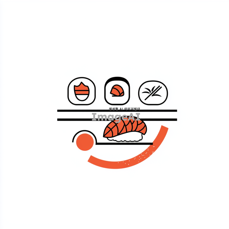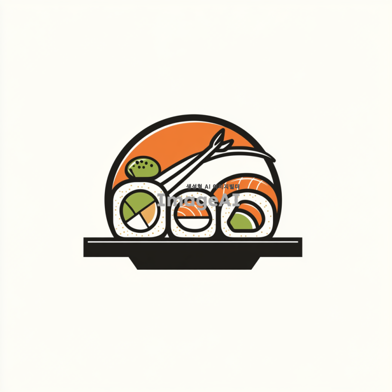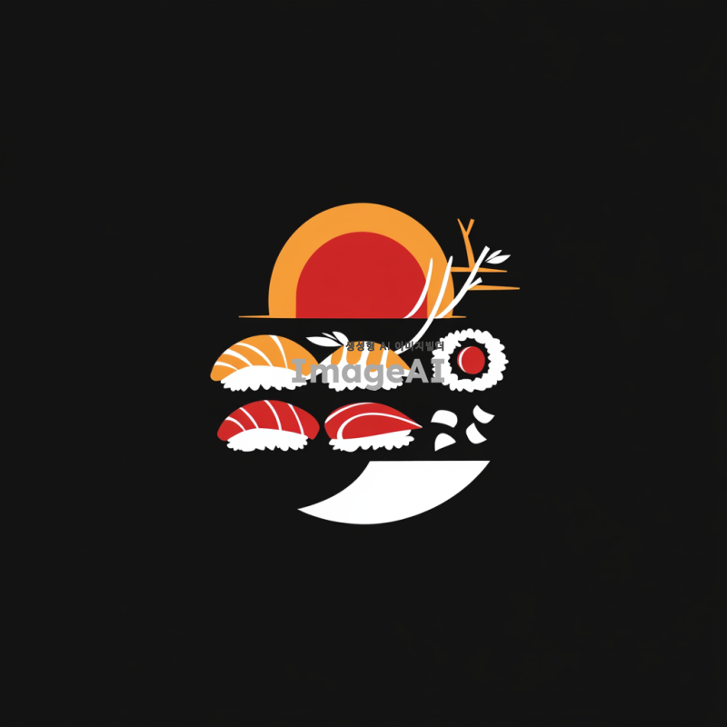 초밥을 주제로 한 현대적이고 세련된 로고 디자인, 일본 전통 요소를 포함한 심플한 형태, 신선한 재료와 맛을 강조하는 색상 조합, 초밥의 다양성을 표현하는 아이콘이나 심볼, 한국적인 감성을 더한 독창적인 스타일.