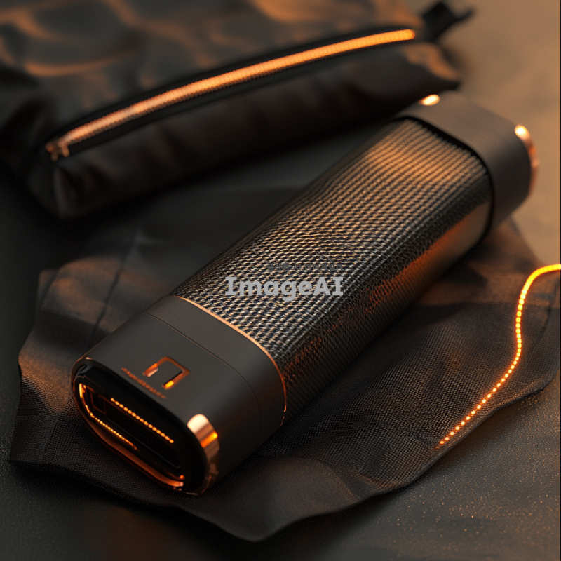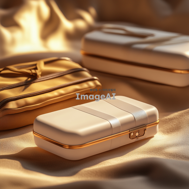 보조배터리에 절연테이프가 감싸져 있는 모습, 단자가 금속과 접촉하지 않도록 보호되고 있는 장면, 주변에는 보호용 파우치와 지퍼백이 함께 놓여 있는 배경, 안전하게 보관되는 느낌을 주는 따뜻한 조명, 한국인 스타일의 보조배터리 디자인, 세부적인 텍스처와 색상 강조.
