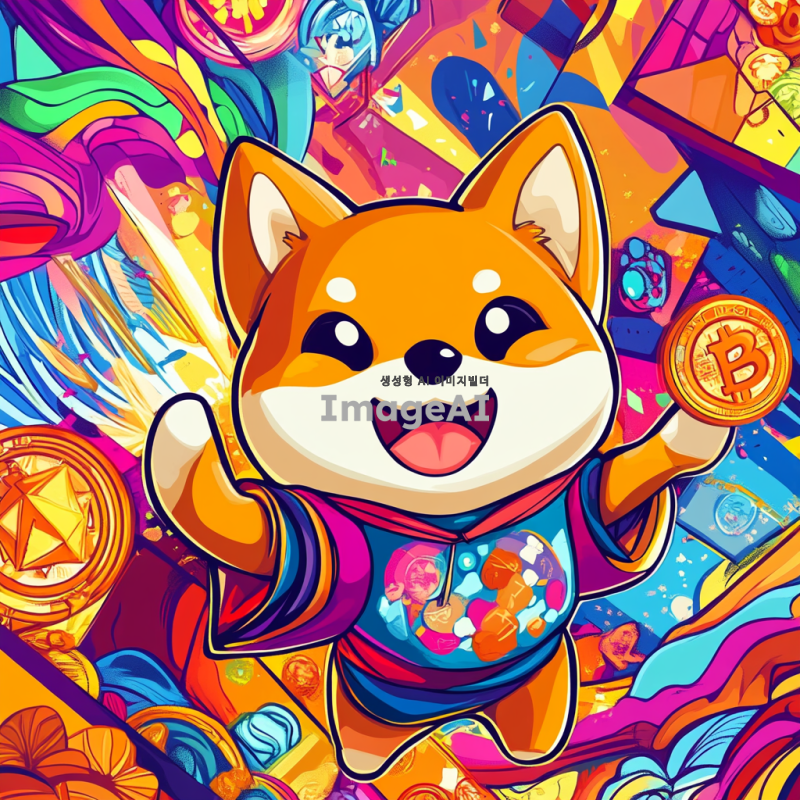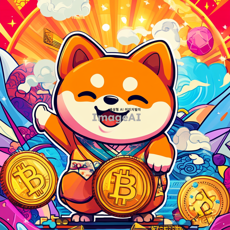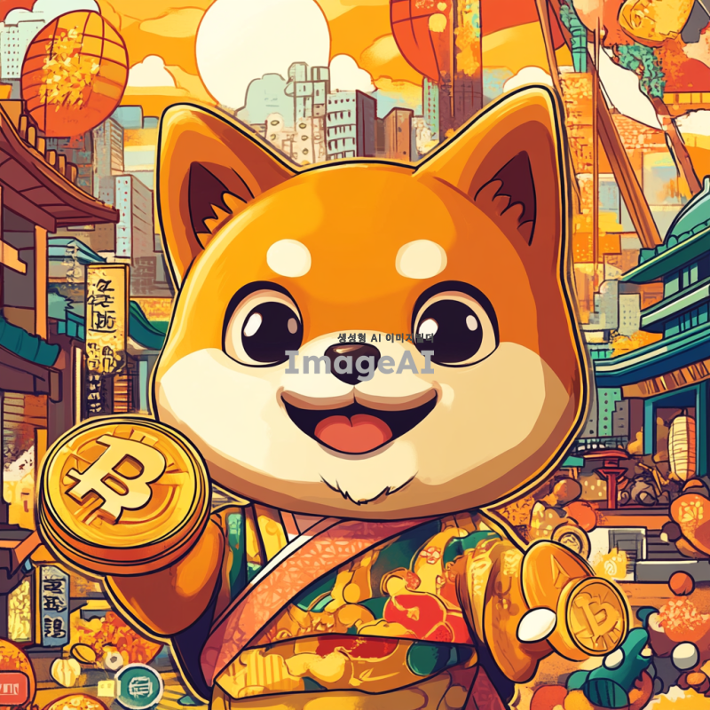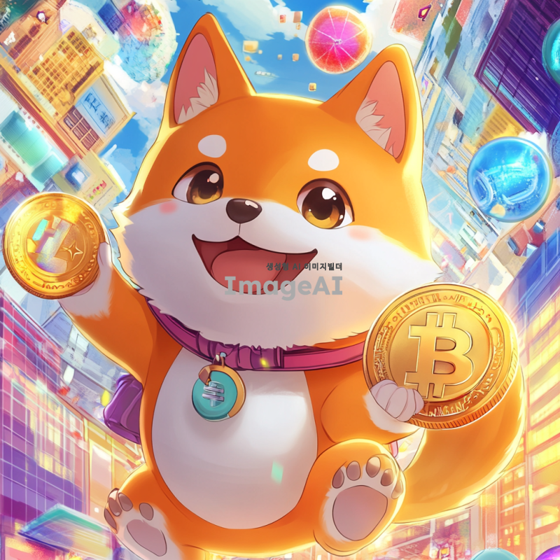 귀여운 시바이누 캐릭터가 손에 솔라나 코인을 들고 있는 모습. 시바이누는 활기찬 자세로, 사랑스러운 표정을 짓고 있으며, 배경은 화려한 색감의 암호화폐 관련 그래픽으로 가득 차 있다. 전체적인 분위기는 밝고 경쾌하며, 일본 전통 요소가 디자인에 섞여 있어 독특한 매력을 더하고 있다.
