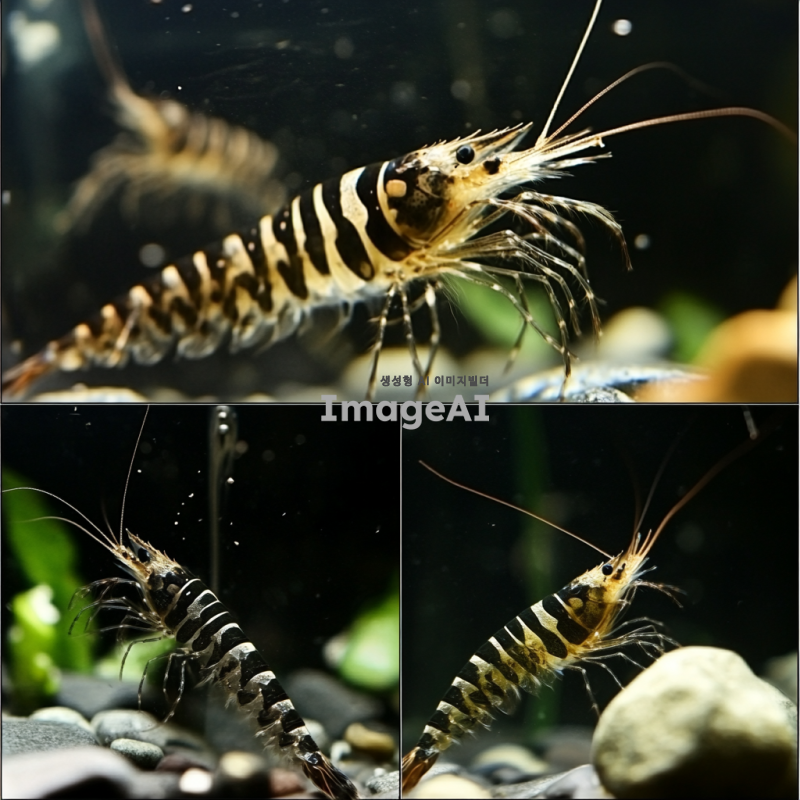 블랙타이거새우가 헤엄치는 모습, 블랙타이거새우 손실 후의 모습, 블랙타이거새우 요리 모습
