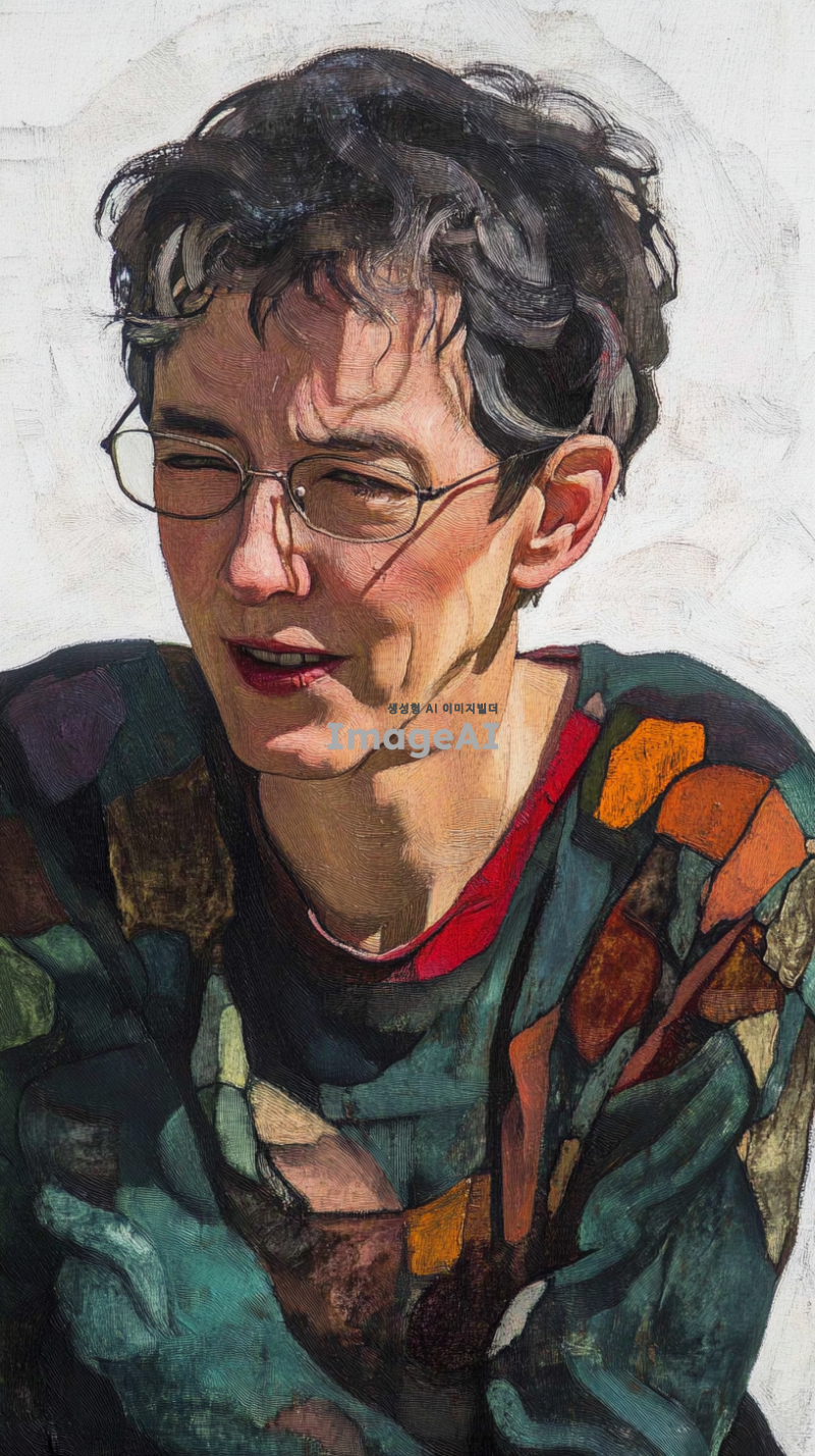 에곤 실레의 독특한 화풍을 반영한 한국인 여성의 초상화, 강렬한 색상과 생동감 있는 선으로 표현된 인물, 감정이 풍부한 표정과 비틀린 형태의 신체, 배경은 추상적이고 유기적인 형태로 구성, 예술적이고 몽환적인 분위기.
