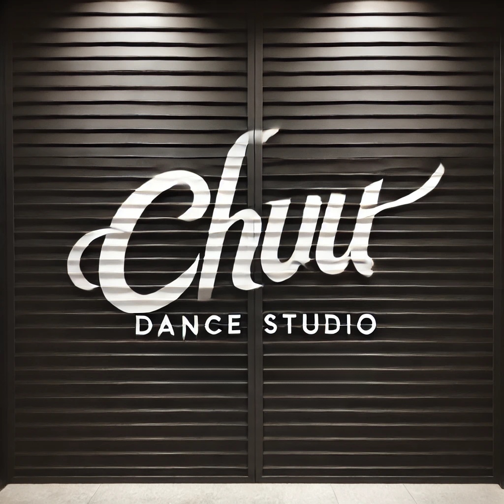 댄스 학원 옆 벽에 시그니처(릴스도 찍고 홍보할 수 있는 용도)가 될 수 있는 철문 셔터? 를 만들려고 해. 검은색 철문에 하얀색으로 chu dance studio 라고 새길꺼야. 예시 이미지들을 보여줘!