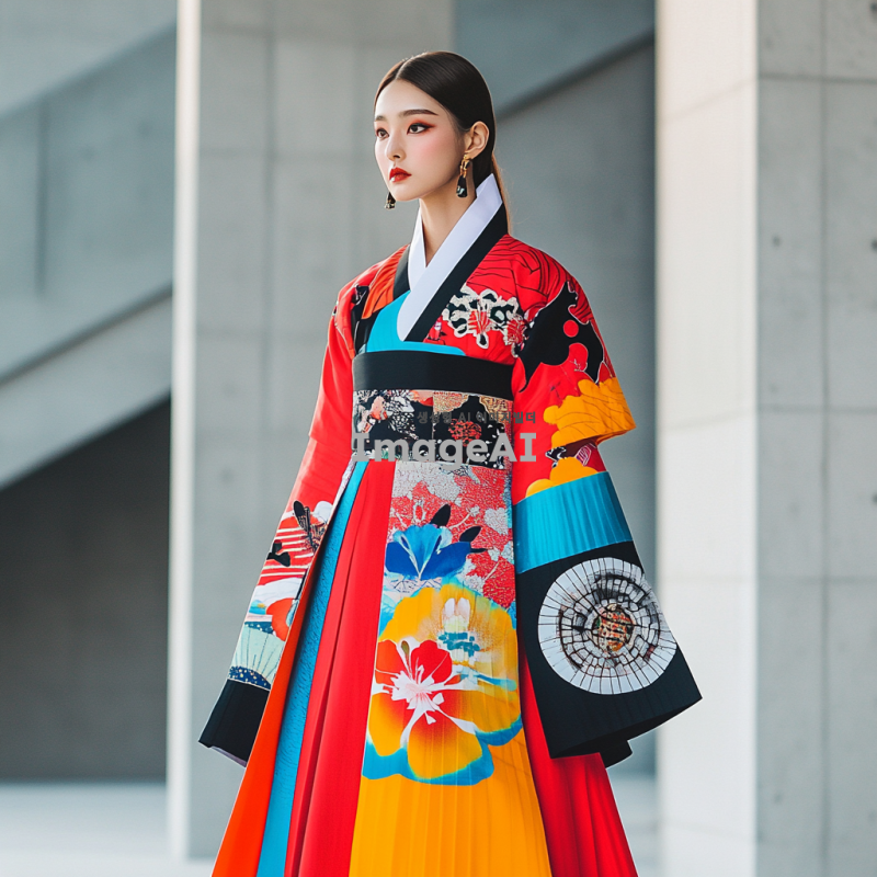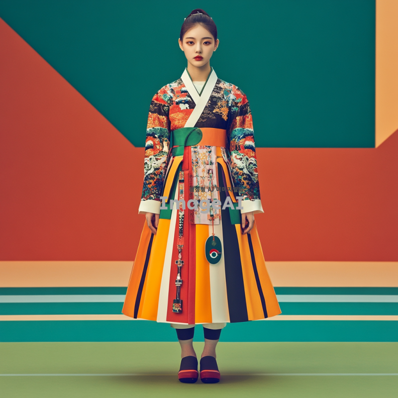 한국의 전통적인 요소와 현대적인 감각이 조화롭게 어우러진 유니폼 디자인. 밝고 선명한 색상으로 구성되며, 한복의 패턴과 디테일을 현대적인 스타일로 재해석한 디자인. 팀의 아이덴티티를 잘 표현할 수 있는 로고와 심볼이 포함되어 있으며, 기능성과 편안함을 고려한 소재로 제작된 모습. 배경은 스포츠 경기장이나 활동적인 환경을 설정하여 유니폼의 활용성을 강조.