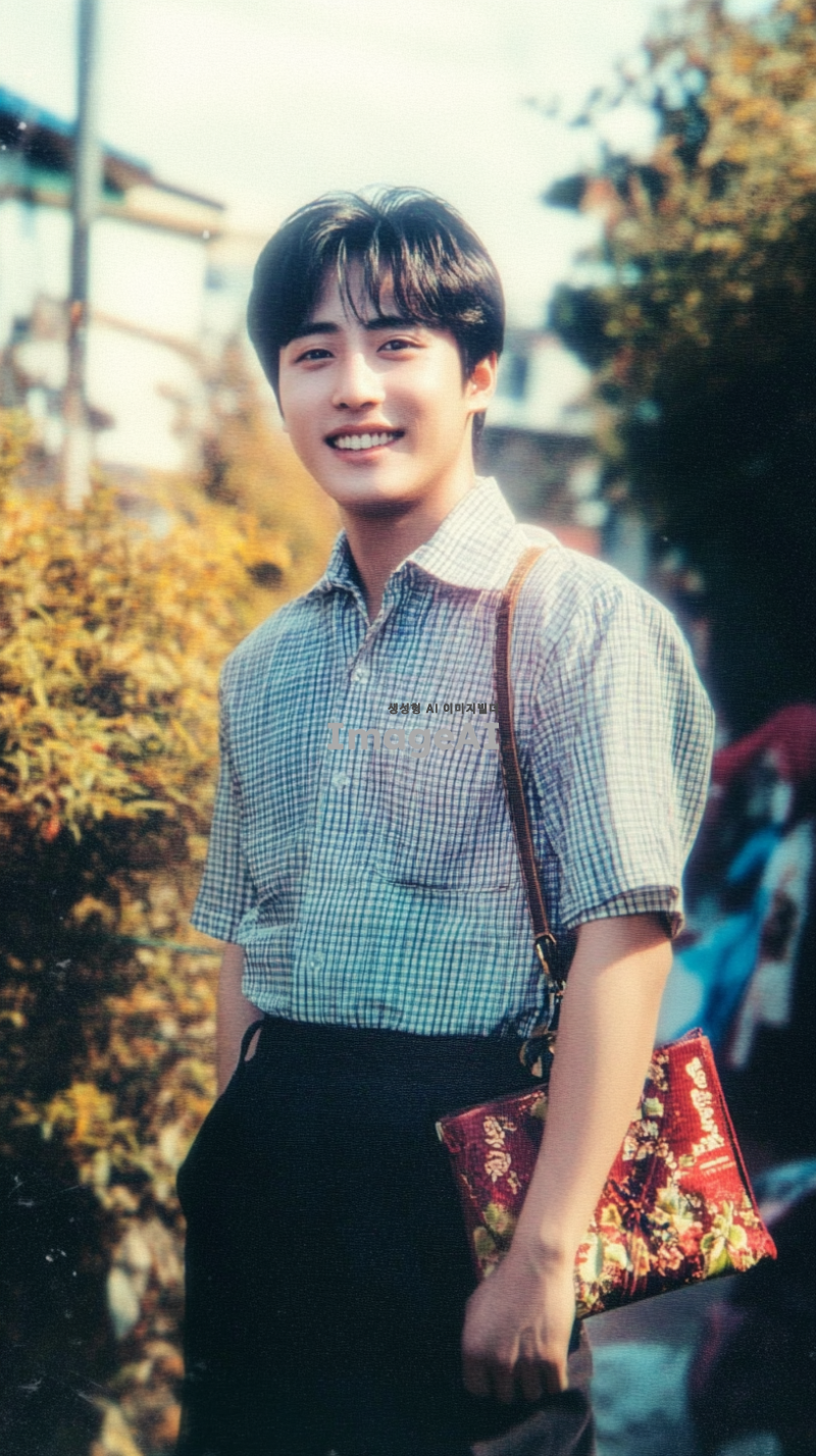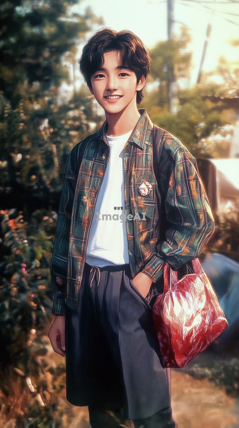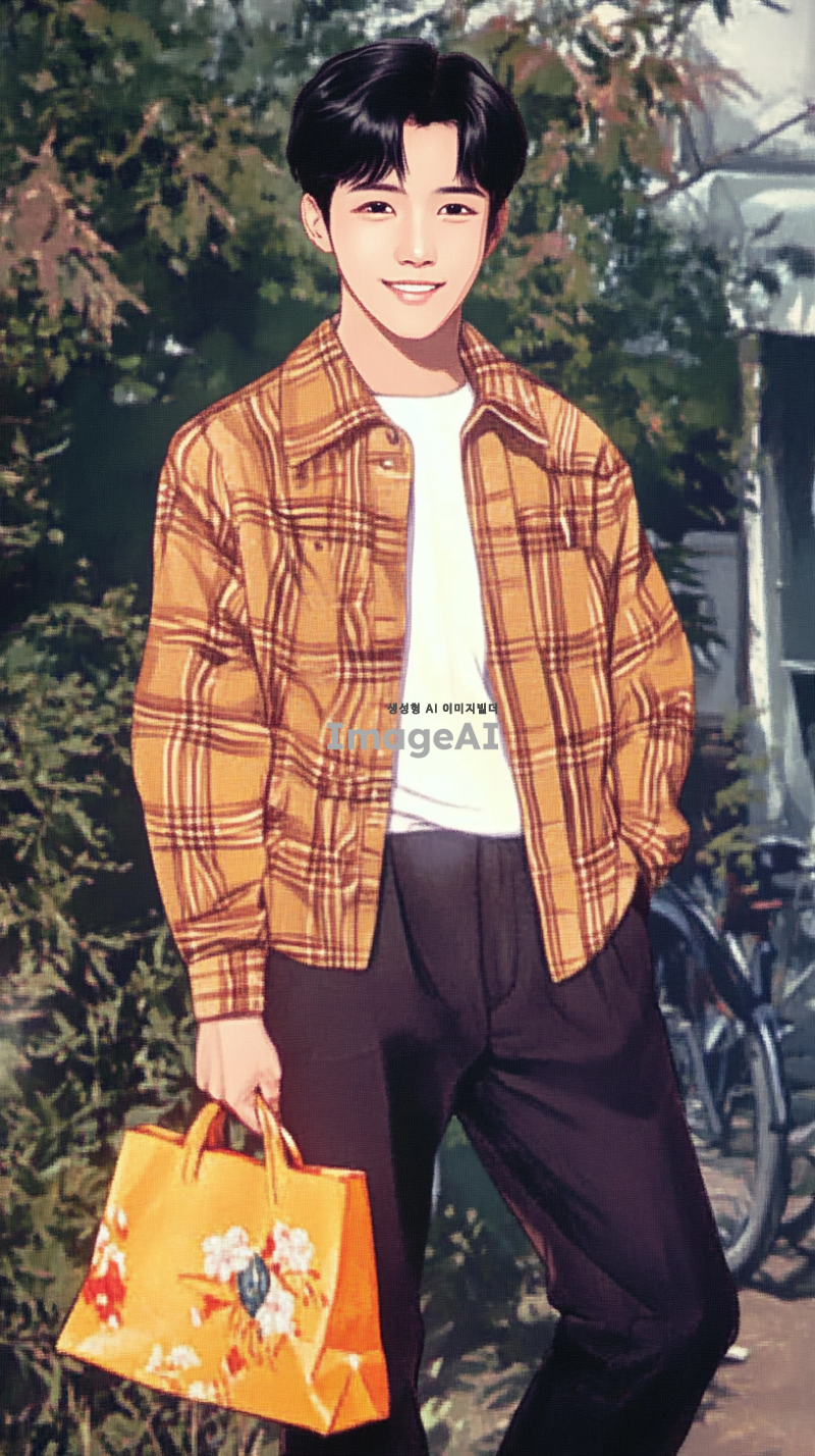 어린 시절의 나의 모습을 바탕으로, 성인이 되었을 때의 모습 상상하기. 밝은 미소를 지닌 한국인 남성, 중간 길이의 검은 머리, 세련된 캐주얼 복장, 현대적인 도시 배경, 자신감 넘치는 포즈, 따뜻한 분위기, 꿈과 희망을 품고 있는 눈빛.