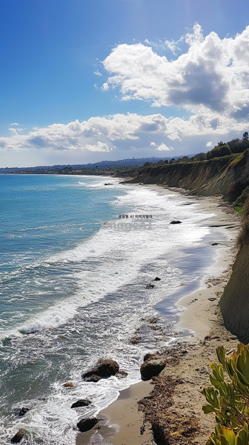 바다와 파도가 있는 이미지인데, 아이폰 15의 잠금화면과 배경화면을 하려고 하거든. 디자인적이기 보다는 자연적이고 실제 모습 같았으면 좋겠고, 이미지의 분위기가 너무 남성적이지 않고 여성스러웠음 해.