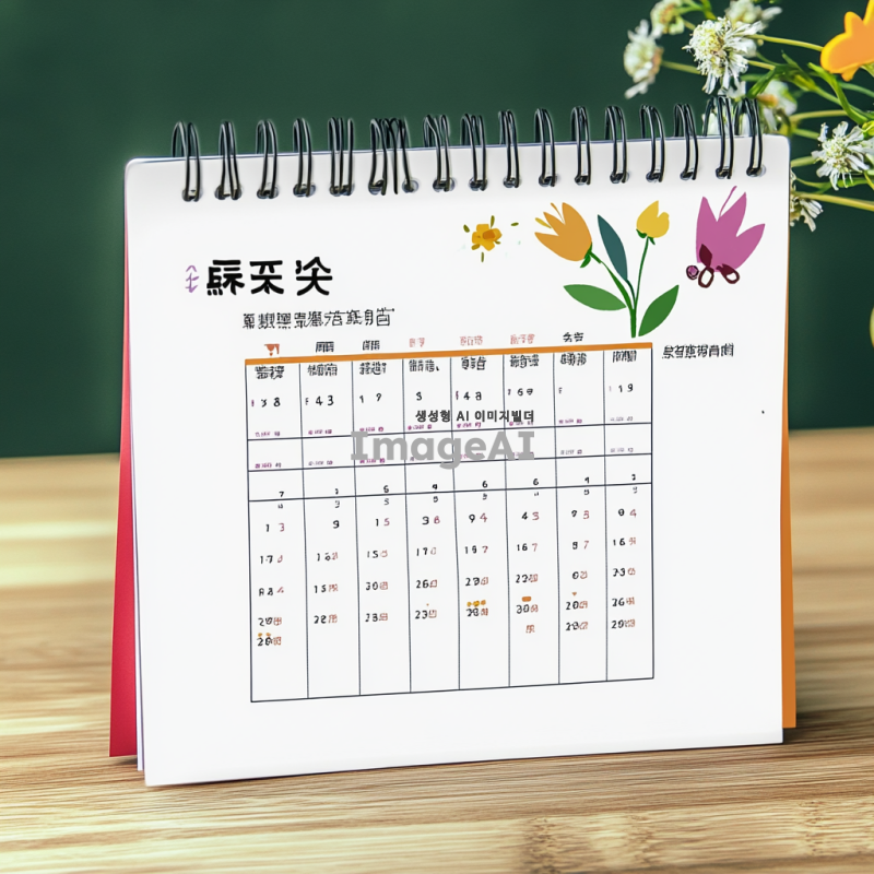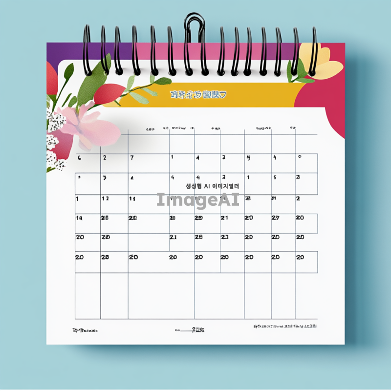 스프링 디자인의 달력, 상단에 스프링 장식이 강조된 형태