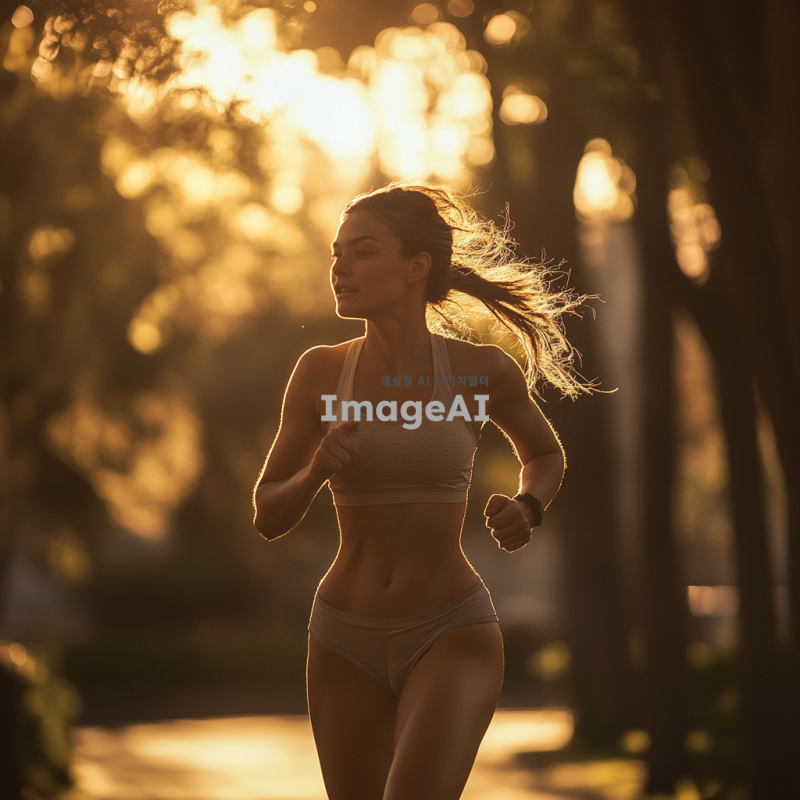 조명은 자연광으로, 햇살이 강렬하게 비추며 여자의 피부를 빛나게 하고 있습니다. 분위기는 경쾌하고 활기차며, 여름의 즐거운 느낌이 가득합니다. 카메라는 여성을 따라 달리며, 중간 샷에서 시작해 점차 클로즈업으로 전환되어 여자의 표정과 역동적인 움직임을 강조합니다. 카메라의 움직임은 부드럽고 자연스럽게, 여성이 달리는 방향으로 이동하며 그녀의 에너지를 전달합니다.