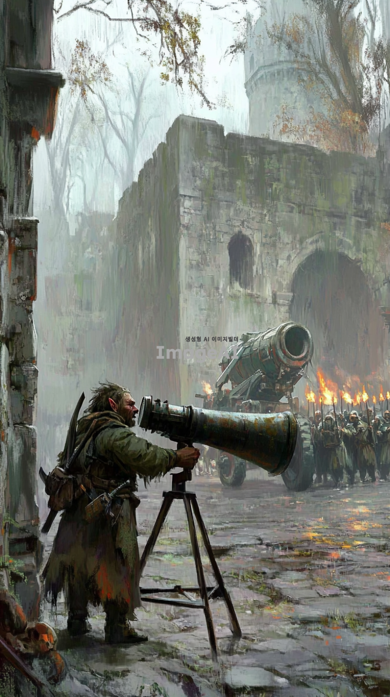 가벼운 갑옷을 입은 드워프 정찰병이 요새 벽 가장자리에 서서 망원경을 통해 바라보고 있습니다. 그의 얼굴은 공포로 가득 찼고, 그는 다른 사람들에게 경고하기 위해 몸을 돌렸다. 멀리서 수천 마리의 고블린과 트롤이 앞으로 행진하며 횃불을 들고 어둠 속에서 깜박이는 빛의 바다를 형성합니다. 거대한 공성 병기가 앞으로 굴러가며 희미한 빛 속에 긴 그림자를 드리운다가벼운 갑옷을 입은 드워프 정찰병이 요새 벽 가장자리에 서서 망원경을 통해 들여다보고 있습니다. 그의 얼굴은 공포로 가득 찼고, 그는 다른 사람들에게 경고하기 위해 몸을 돌렸다. 멀리서 수천 마리의 고블린과 트롤이 앞으로 행진하며 횃불을 들고 어둠 속에서 깜박이는 빛의 바다를 형성합니다. 거대한 공성 병기가 앞으로 굴러가며 희미한 빛 속에 긴 그림자를 드리운다.