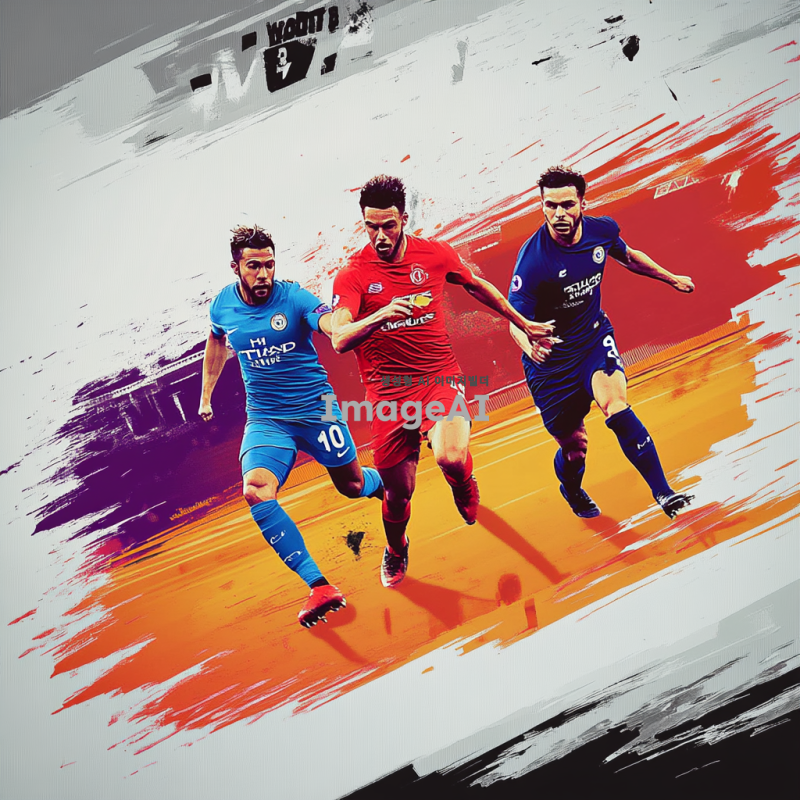노팅엄 포레스트와 맨체스터 시티의 축구 경기 장면, 맨체스터 시티의 승리를 강조하는 그래픽 디자인, 배경에 경기장과 팀 로고 포함, 생동감 넘치는 색상과 역동적인 포즈의 선수들. 크리스탈 팰리스와 입스위치의 경기 장면, 크리스탈 팰리스의 승리를 강조하는 요소 추가, 팀 컬러와 로고를 포함한 디자인. 울버햄튼과 에버튼의 경기 장면, 에버튼의 승리를 강조하는 그래픽, 선수들의 액션 포즈와 팀 로고를 포함한 역동적인 이미지. 각 이미지에 승률을 나타내는 텍스트 추가.