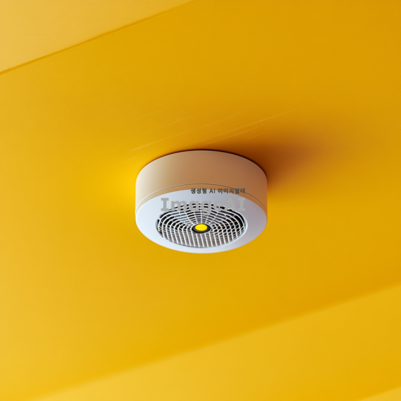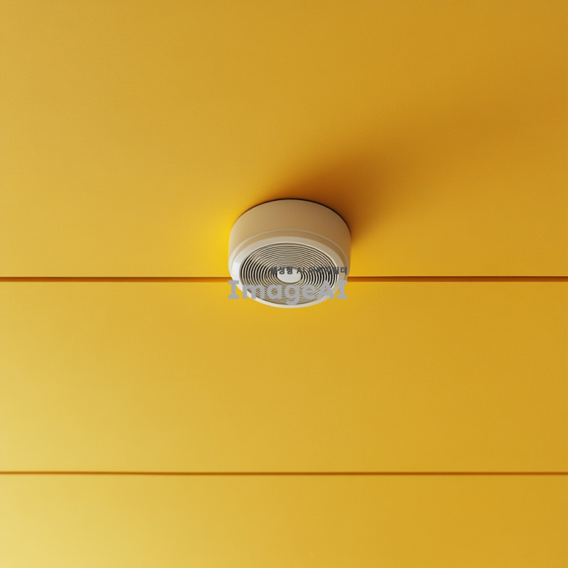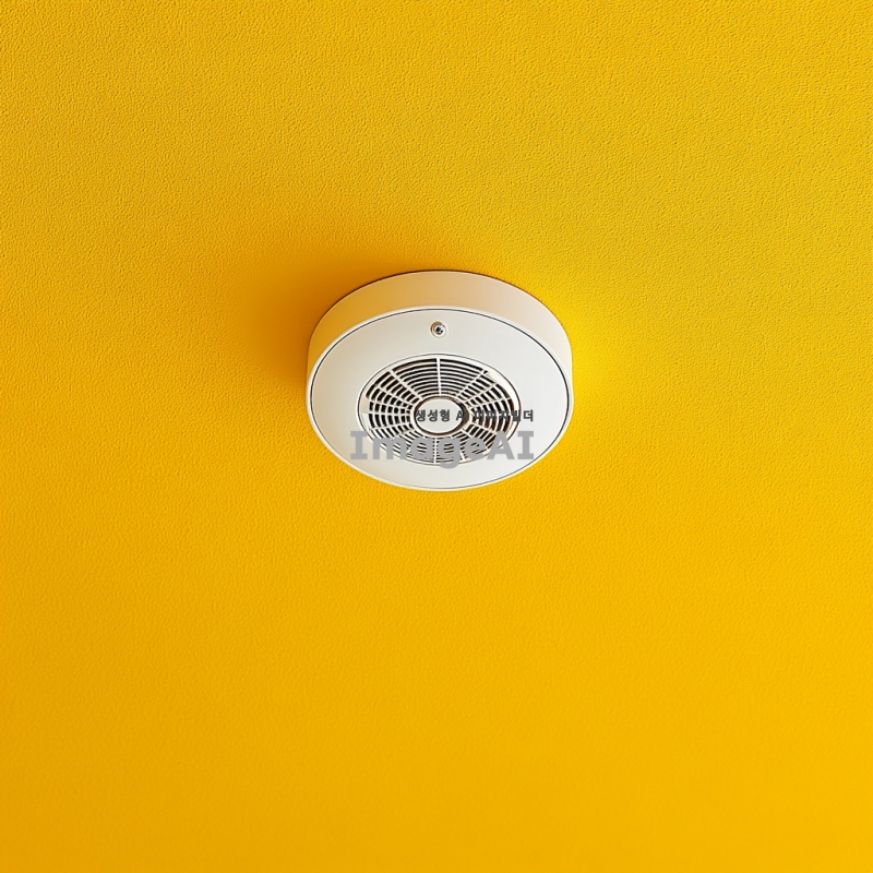 노란색 천장에 설치된 연기 감지기,
