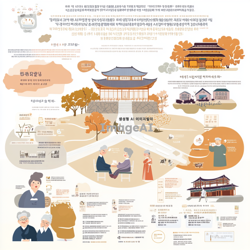 한국의 간병비 보험 보장 내역을 설명하는 인포그래픽 디자인, 간병인을 돕는 모습과 다양한 보장 항목들을 시각적으로 나타낸 이미지, 따뜻한 색감과 친근한 스타일, 한국의 전통적인 요소를 가미한 배경, 간병 서비스의 중요성과 혜택을 강조하는 메시지 포함.