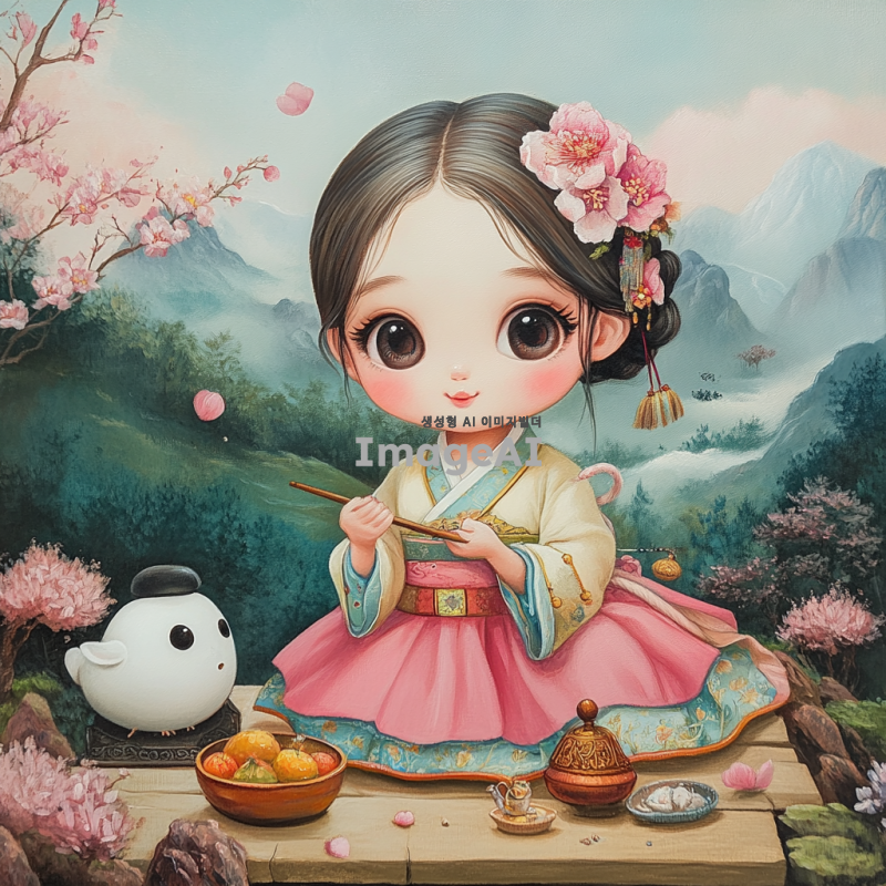 한국의 전통적인 육사시미를 주제로 한 그림, 귀엽게