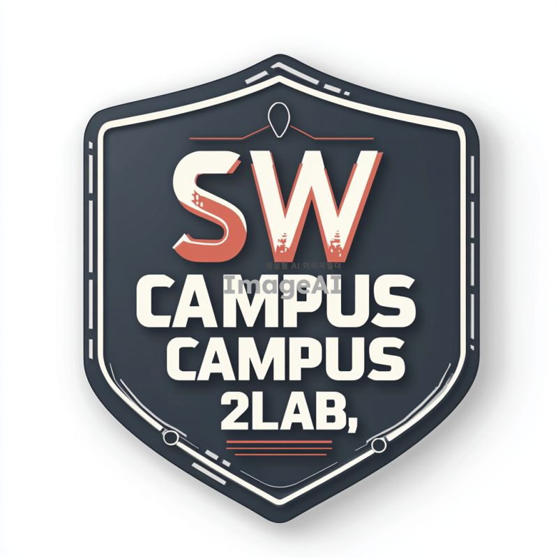 SW CAMPUS 2LAB의 뱃지 로고 , 원형 또는 방패 형태의 디자인, 심플하면서도 인상적인 그래픽 요소, 텍스트는 "SW CAMPUS 2LAB"을 포함하여 읽기 쉽게 배치, 전체적으로 프로페셔널하고 신뢰감을 주는 느낌.