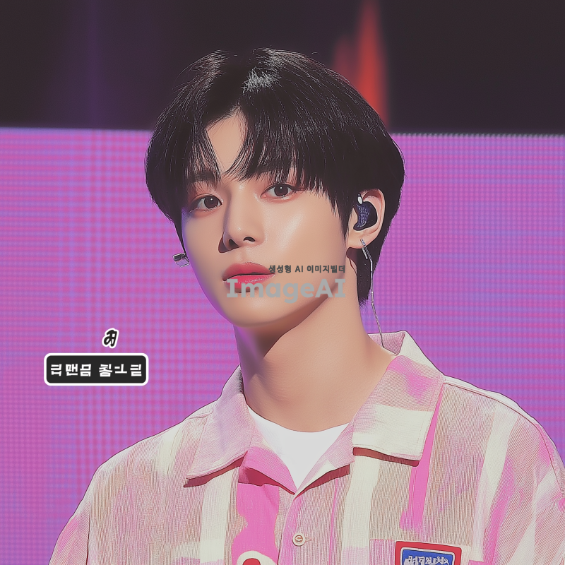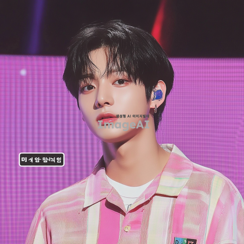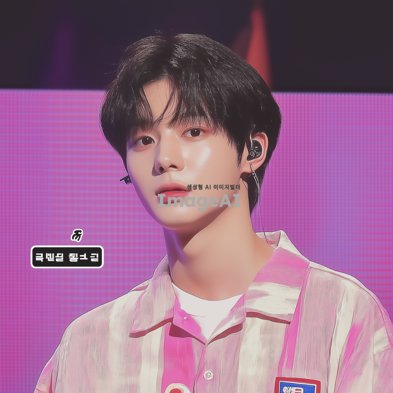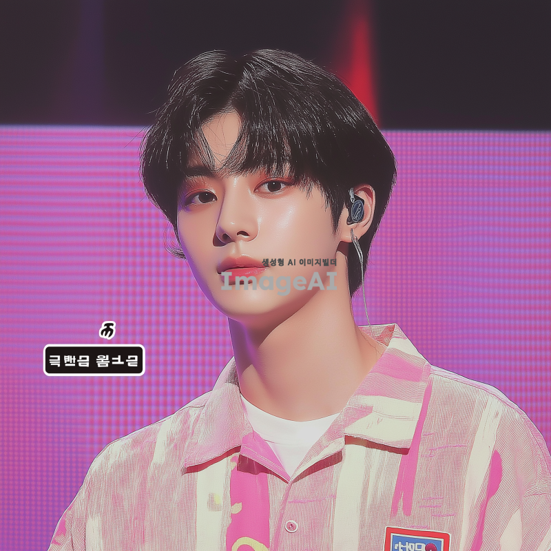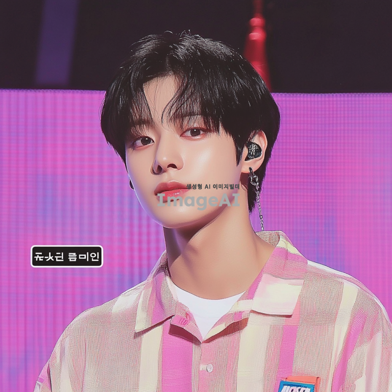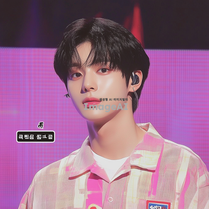 한국 남자 아이돌. 그는 음악 쇼 무대에서 검은 머리를 하고 있다. 짧은 다크 브라운 머리와 둥근 얼굴형, 창백한 피부색, 날씬하지만 마르지 않은 몸매를 가지고 있다. 그는 진지하면서도 귀여운 모습이다.