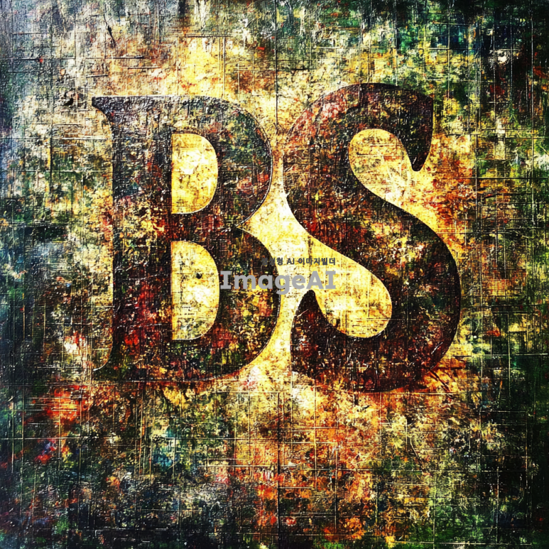 도화지에 페인트칠한 배경 위에 'BS'라는 글자가 크게 적혀 있는 이미지. 배경은 다양한 색상의 페인트로 화려하게 표현되고, 'BS'는 두드러지게 보이도록 디자인되어 있음. 전체적인 느낌은 예술적이고 창의적이며, 색감이 풍부하고 생동감이 넘치는 분위기.
