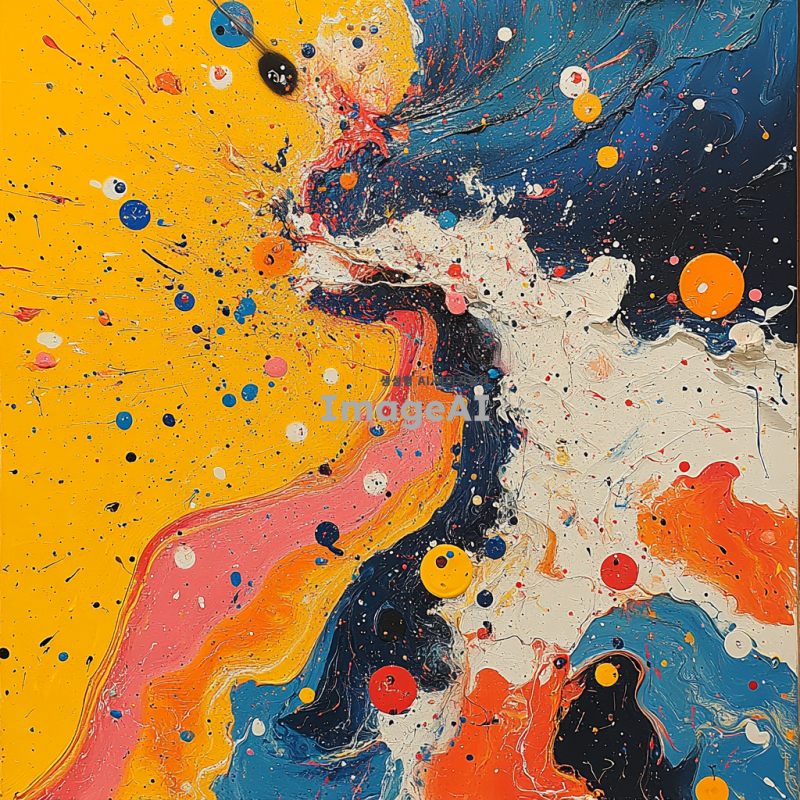 다트를 던져서 형형색색의 물감이 튀어 나오는 예술 작품, 캔버스 위에 다양한 색상의 얼룩과 패턴이 형성된 모습, 다트가 날아가는 순간의 역동적인 장면, 화려한 색조와 추상적인 디자인이 어우러진 미술 작품, 한국의 전통 미술과 현대 미술이 결합된 독창적인 다트 아트, 밝고 경쾌한 분위기의 갤러리 전시회 장면.
