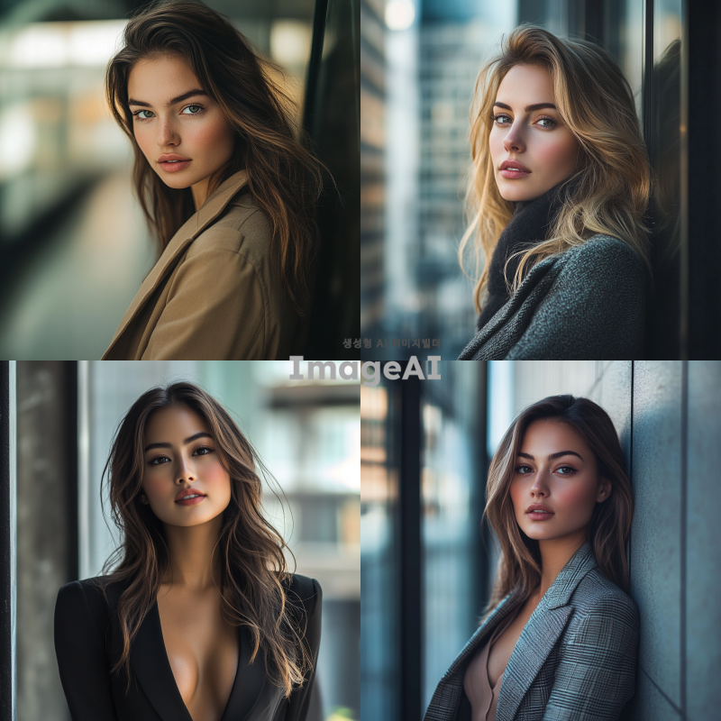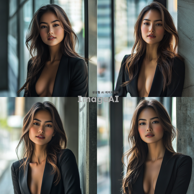 매력적이고 세련된 스타일의 여성 모델이 현대적인 도시 배경에서 자신감 넘치는 포즈를 취하고 있는 모습. 그녀는 세련된 의상을 입고 있으며, 자연스러운 조명 아래에서 빛나는 피부와 매혹적인 표정을 지닌 채 카메라를 바라보고 있다. 배경은 흐릿하게 처리되어 모델이 더욱 돋보이도록 구성되어 있다.