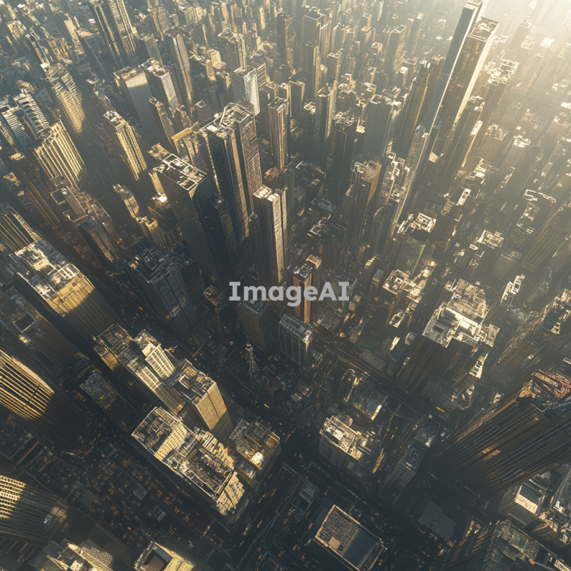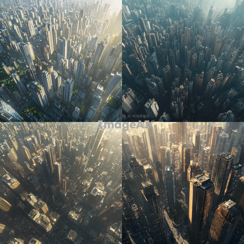 대도시의 빌딩숲을 비행기로 위로 지나가면서 찍은 사진을 만들고 싶어.
