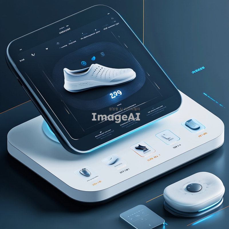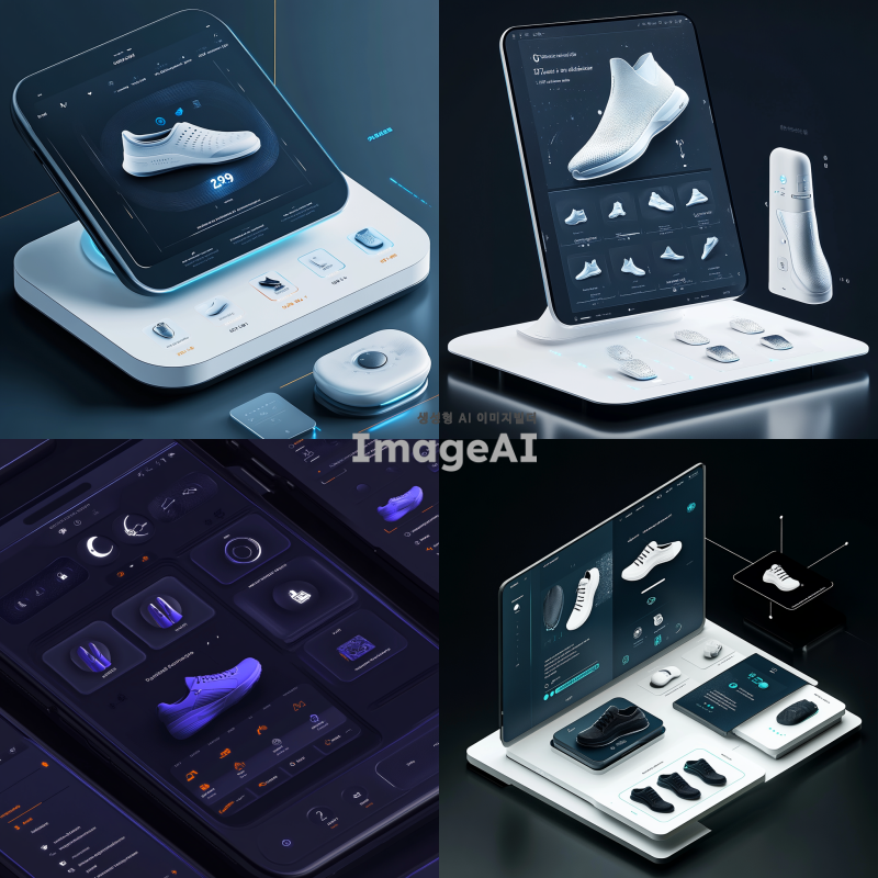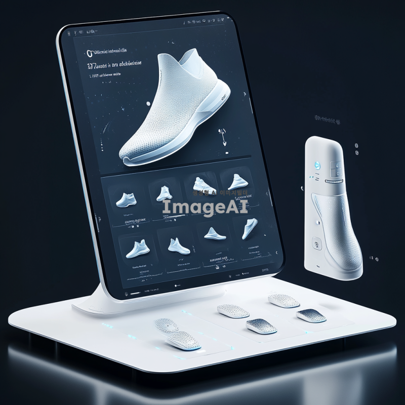 신발 내부의 습도를 측정하고 건조시키는 장치의 디지털 인터페이스 디자인, 사용자 친화적인 그래픽 요소, 습도와 건조 상태를 시각적으로 표현하는 아이콘, 현대적이고 직관적인 UI/UX 디자인, 신발과 연관된 이미지, 깔끔하고 세련된 색상 조합, 기술적이고 미래지향적인 분위기.
