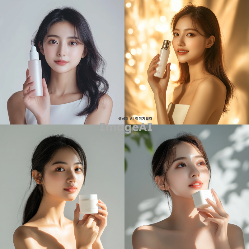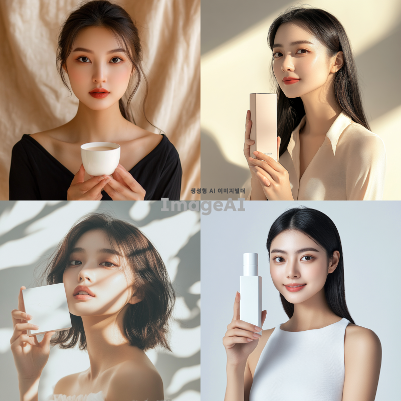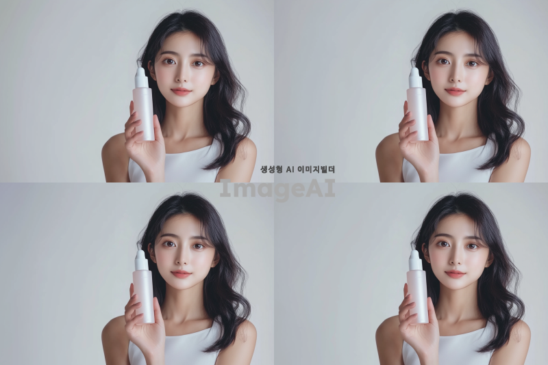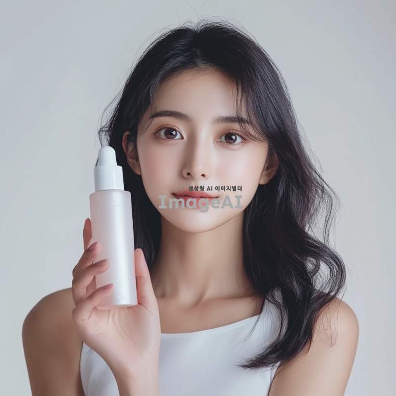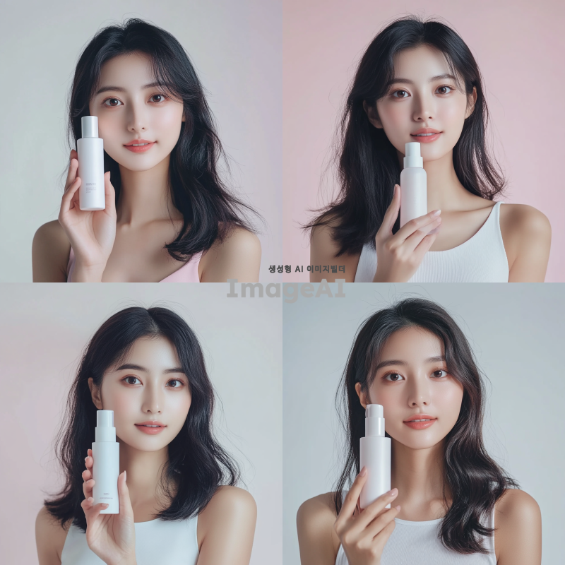아시아 여성 모델이 제품을 들고 있는 모습, 어깨까지만 나오는 구도, 자연스럽고 세련된 분위기, 밝고 환한 조명, 현대적인 패션 스타일, 깨끗한 배경.