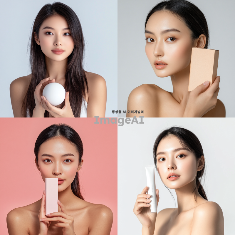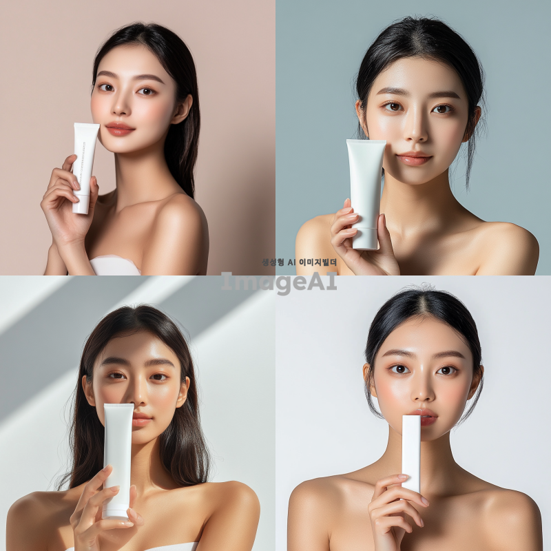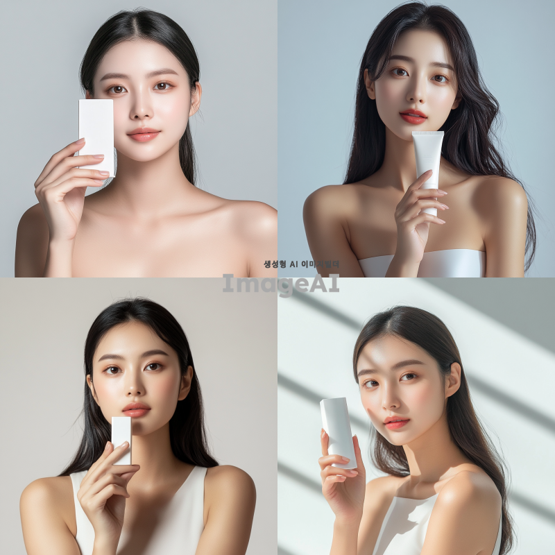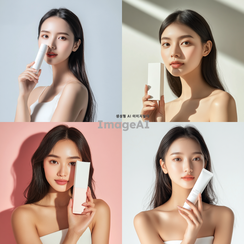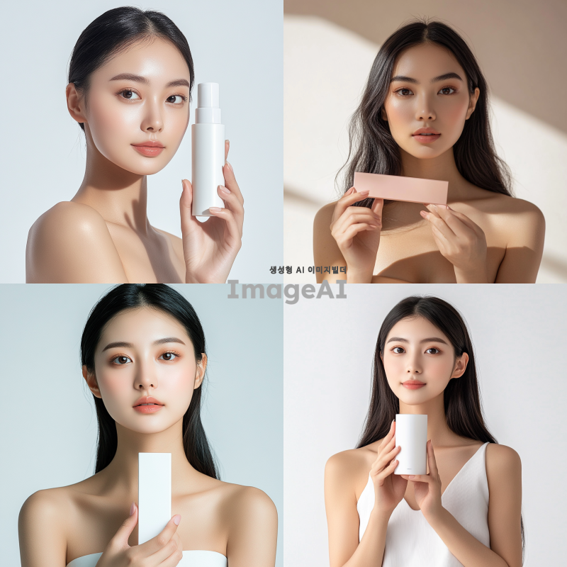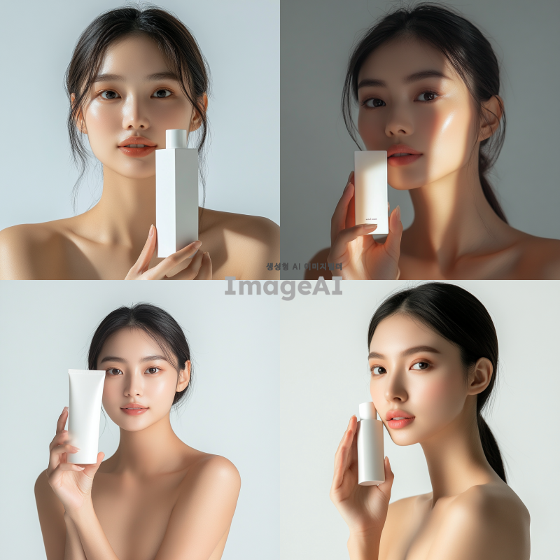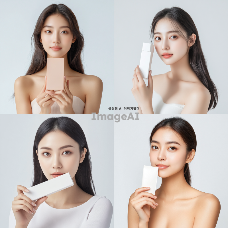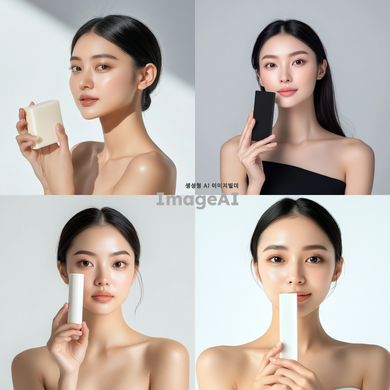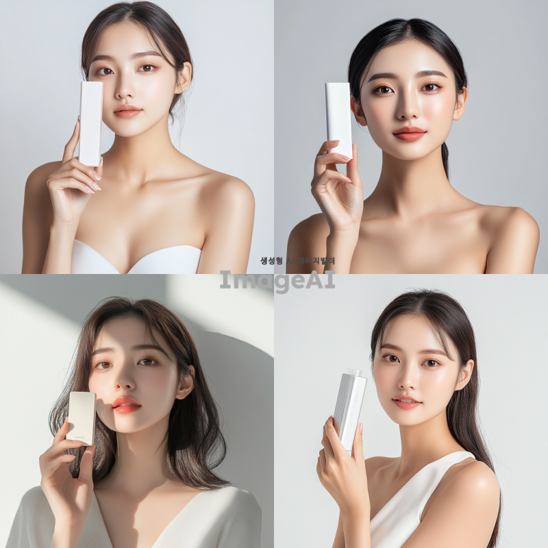 예쁜 아시아 여성 모델이 제품을 들고 정면을 바라봅니다. 어깨까지만 나옵니다. 제품 크기는 가로 15cm, 세로 20m 정도이고, 제품이 얼굴을 가리지 않습니다. 그늘지지 않아야 합니다. 밝고 환한 조명
