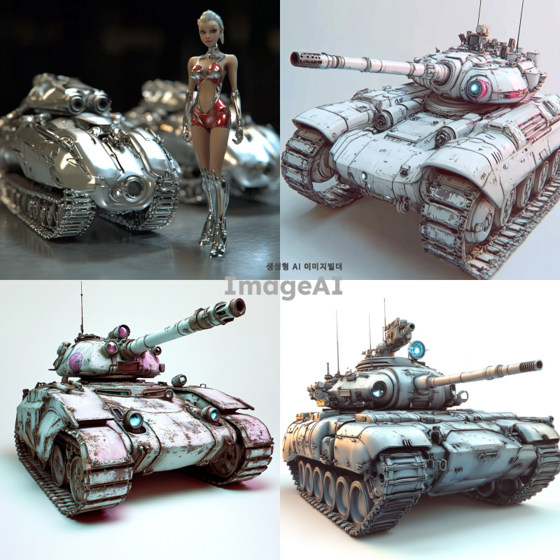 눈과 입이 있는 스스로 생각하고 움직이는 탱크를 그리고 싶어. 현재의 탱크에서 훨씬 많이 진화한 탱크의 모습이면 좋겠어요. 포신 한 개와 궤도만 있는 현대의 탱크보다 훨씬 진화하여 포신 뿐 아니라 발칸포, 대포, 레이저 발사 등 미래적인 탱크로 그려줘