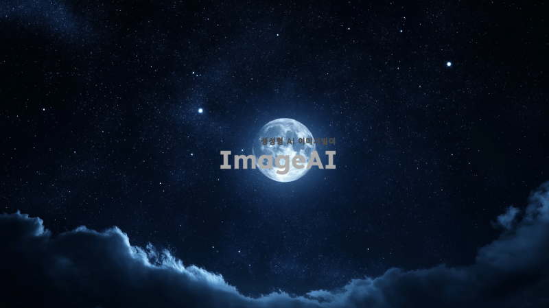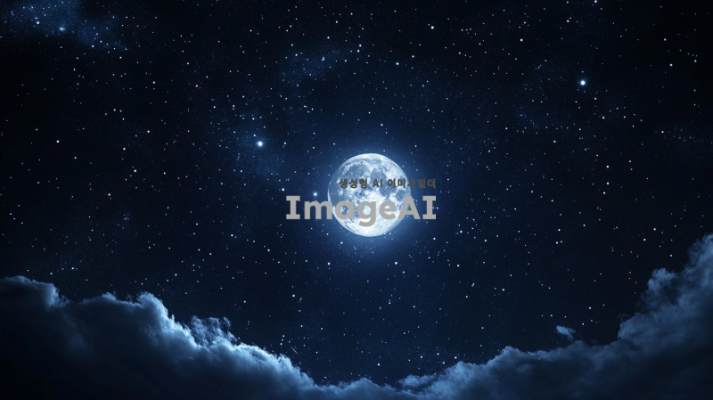 어두운 밤 하늘, 수많은 별들이 쏟아질 듯이 빛나고 있는 장면, 중앙에 환하게 빛나는 보름달, 은은한 달빛이 주변을 비추며 몽환적인 분위기를 연출, 하늘은 깊고 짙은 남색, 별들은 다채로운 색상으로 반짝이며 신비로운 느낌, 달 주변에는 옅은 구름이 부드럽게 흘러가는 모습, 전체적으로 차분하고 평화로운 분위기